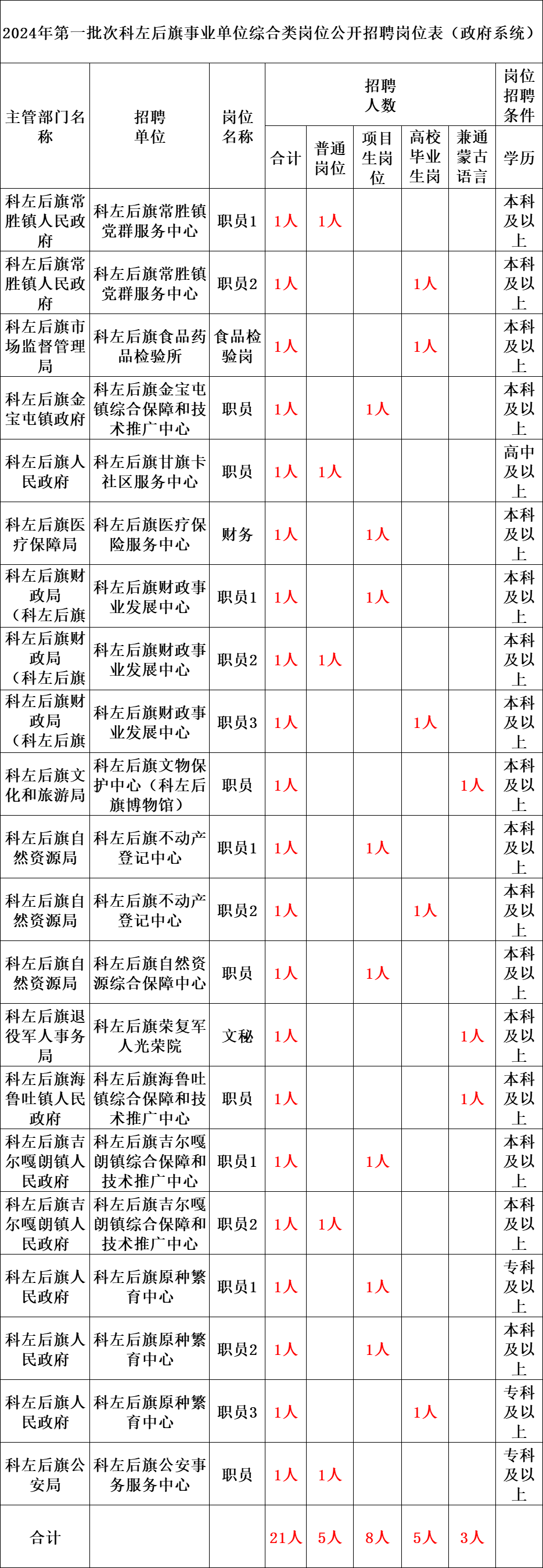 (二)根据自治区有关文件规定,本次招聘定向招聘“服务基层项目人员”和“大学生退役士兵”(简称项目人员,最低服务满2年)37人;定向招聘“高校毕业生”32人;定向招聘“兼通蒙古语言文字人员”1人;其他岗位为普通岗位。