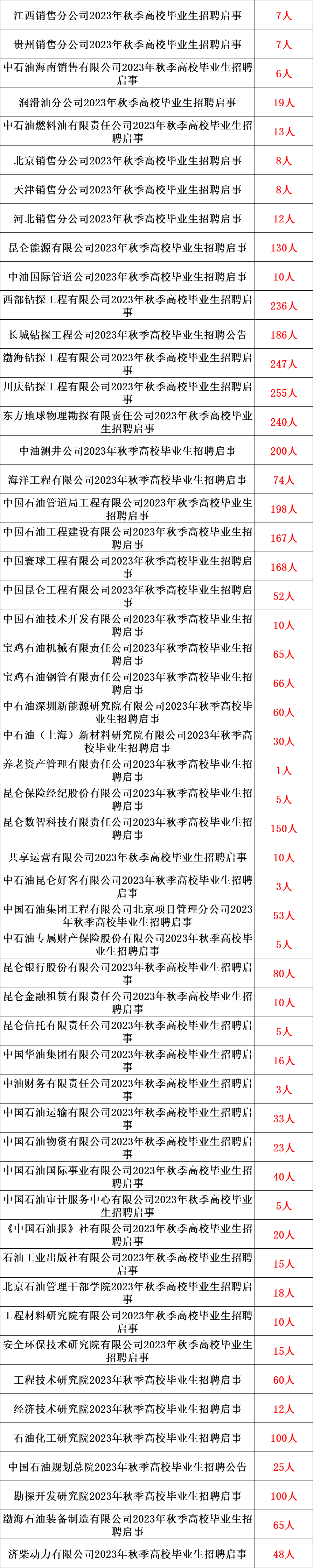 1.中国石油各招聘单位的高校毕业生招聘信息均通过招聘平台发布,无其他报名方式。