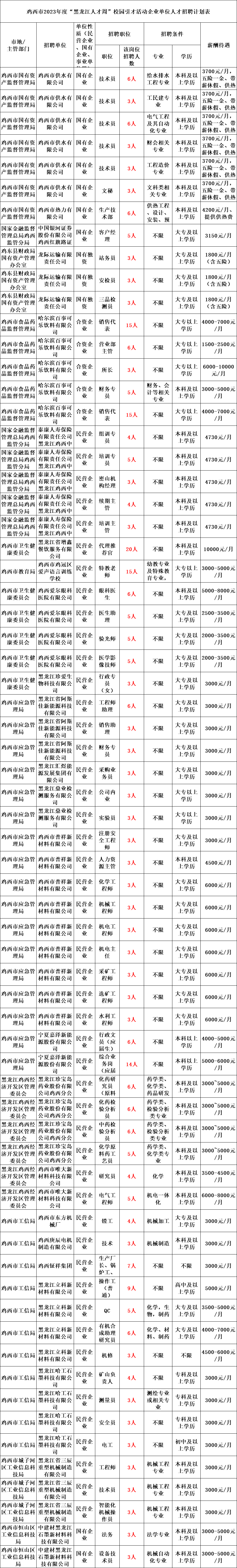 按照省委组织部、省人社厅《关于开展2023年度“黑龙江人才周”校园引才活动的通知》要求,经市委、市政府同意,决定开展鸡西市2023年度“黑龙江人才周”校园引才活动,现将有关事项公告如下: