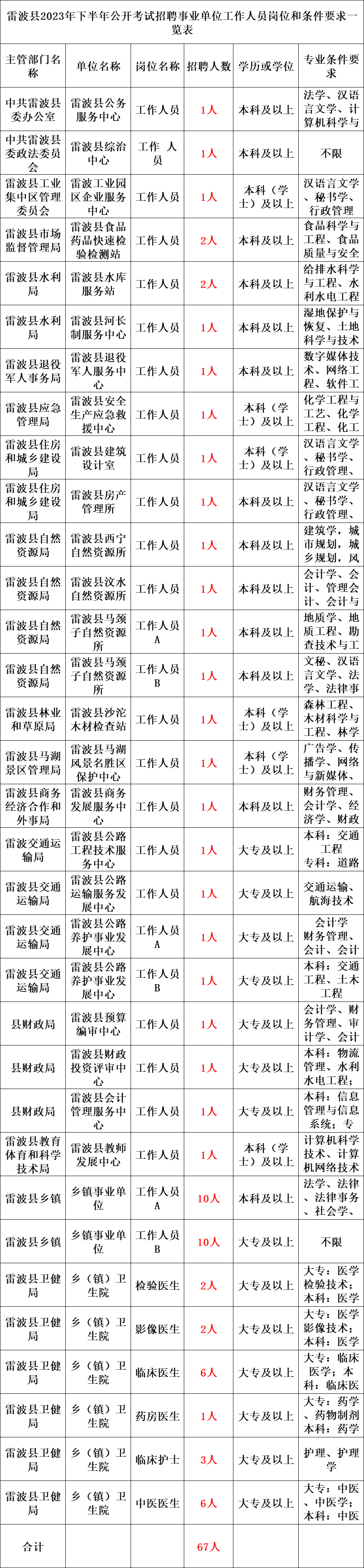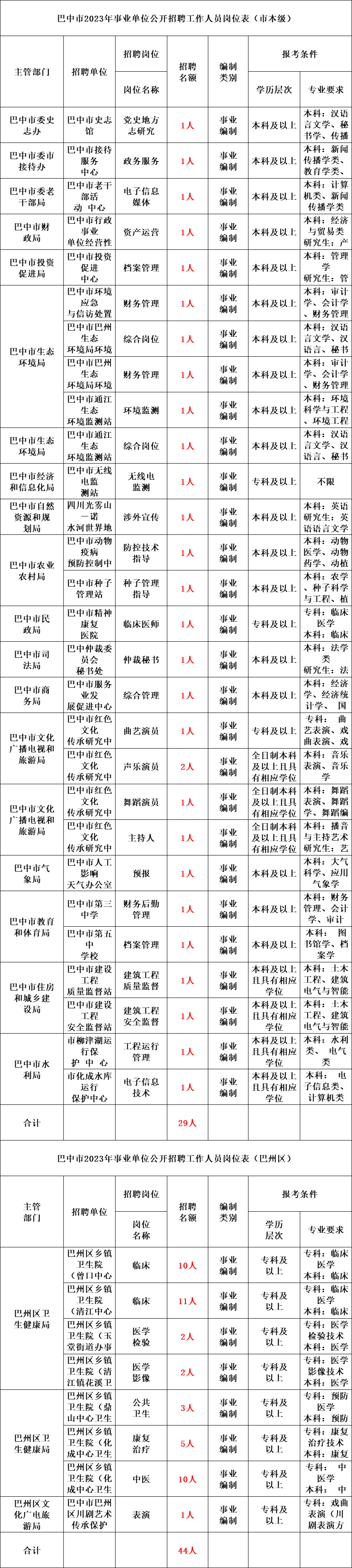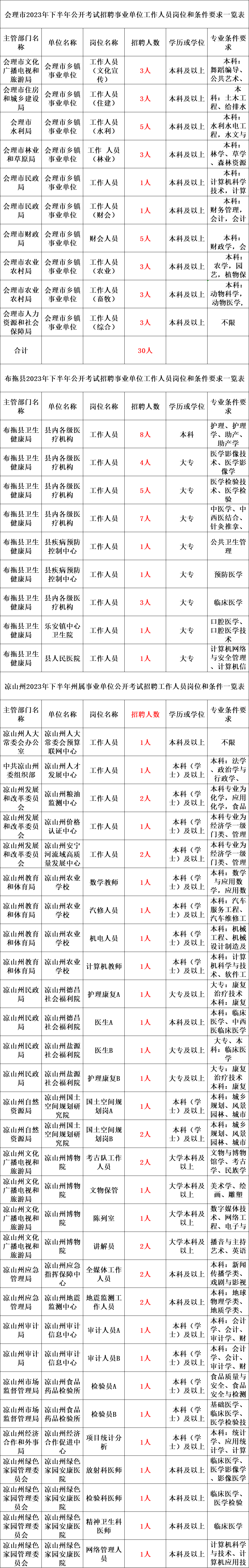 本次招聘单位16 个,招聘人员 37名,其中:管理岗位7名;专业技术岗位30名,具体岗位见附件1《凉山州2023年下半年州属事业单位公开考试招聘工作人员岗位和条件一览表》(以下简称《一览表》)。