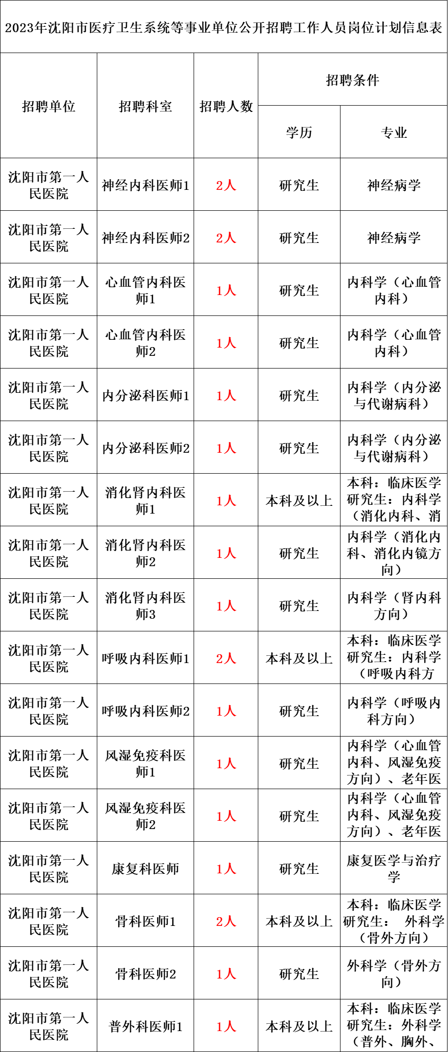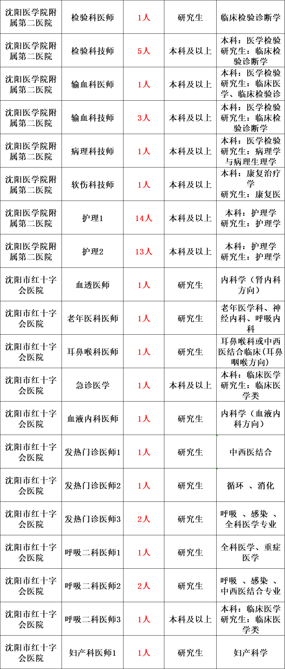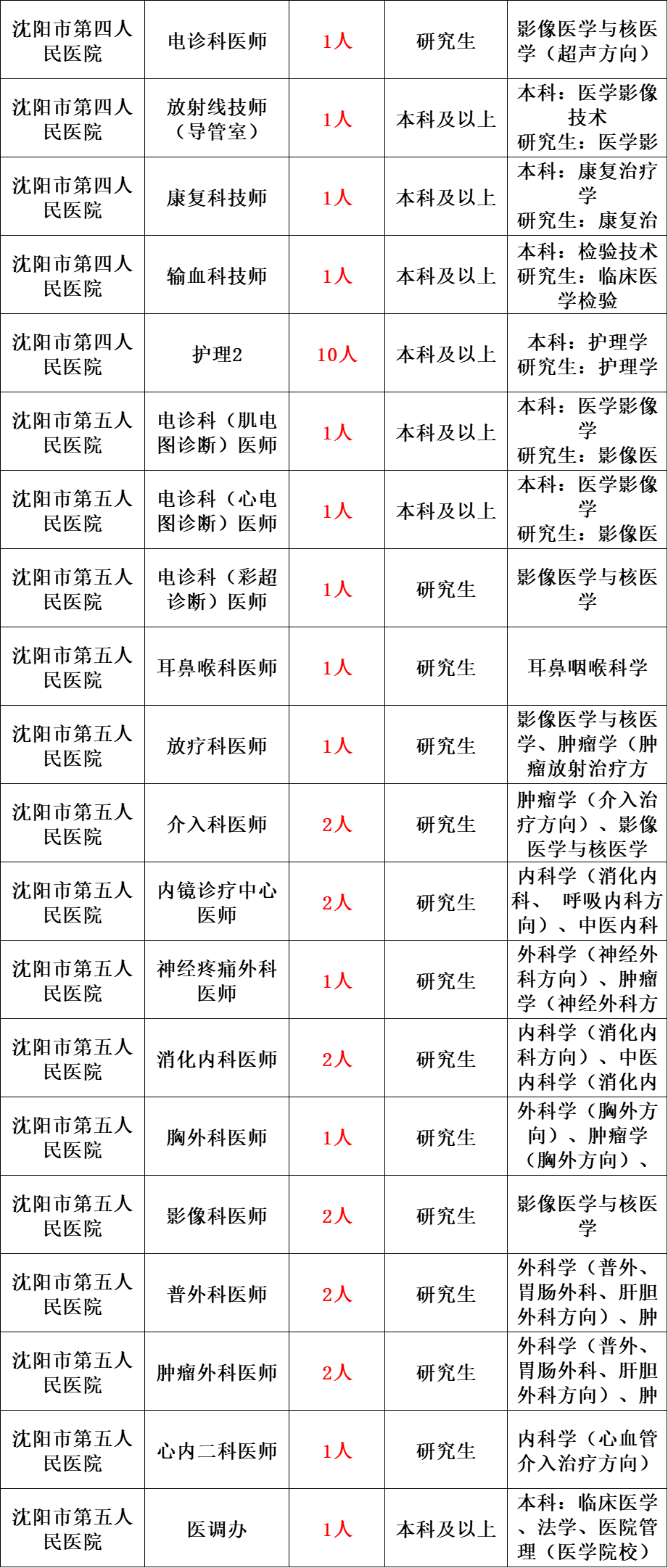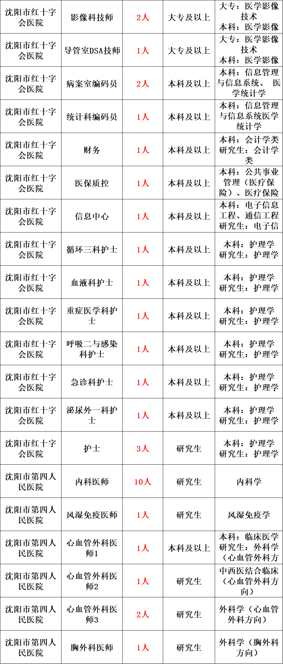 依据《事业单位人事管理条例》(国务院令第652号)、《中共辽宁省委组织部 辽宁省人事厅关于印发〈辽宁省事业单位公开招聘人员办法〉的通知》(辽人发〔2007〕1号)等规定,经市人民政府批准,决定面向社会为沈阳市市级医疗卫生系统公开招聘973名、区县(市)医疗卫生系统公开招聘3090名、沈阳市教育系统公开招聘88名、沈阳市公安医院公开招聘2名、沈阳市动物疫病预防控制中心公开招聘16名工作人员。现将有关事项公告如下: