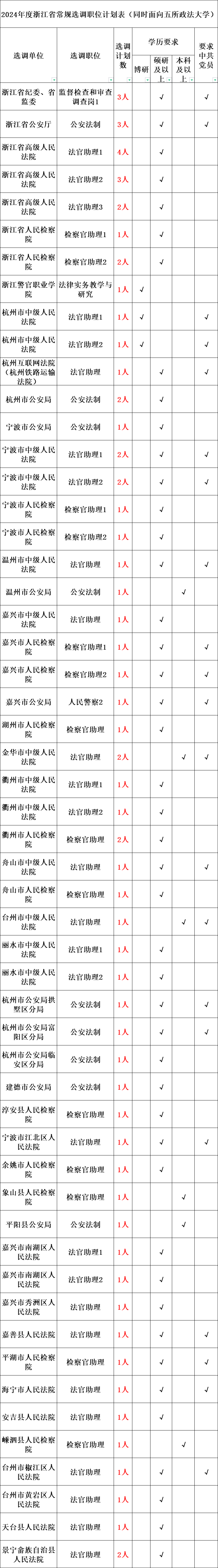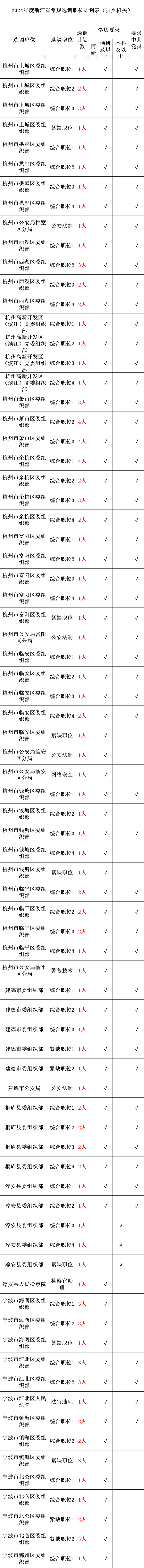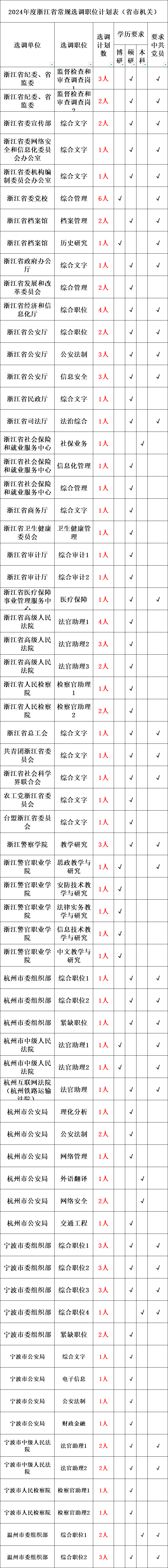 2024年浙江省党政机关选调