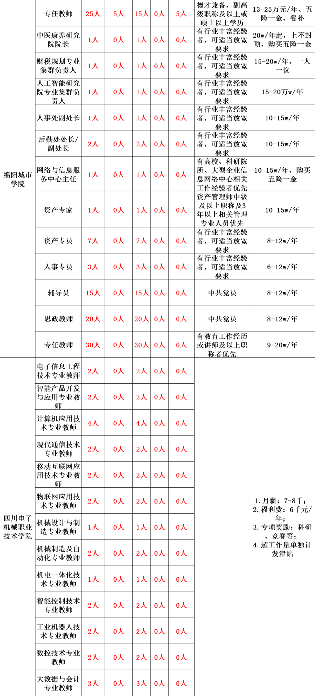 (一)在绵阳的中央、省属科研院所及高等院校拟公开引进人才708名(详见附件1)。