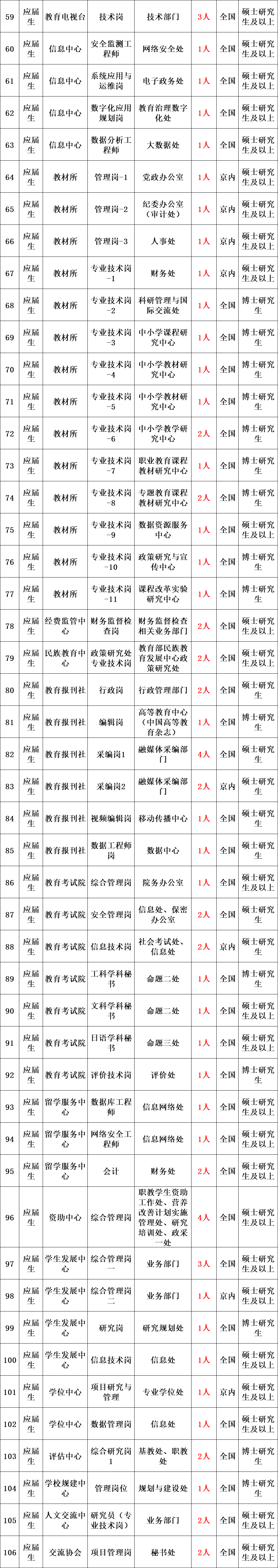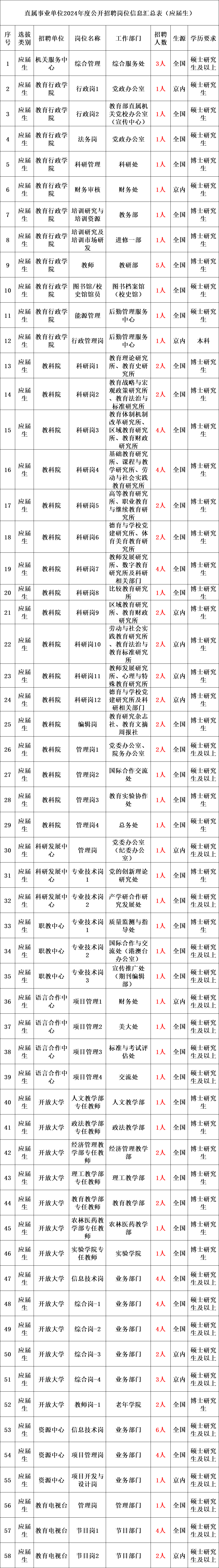 受教育部委托,教育部学生服务与素质发展中心负责组织实施2024年度教育部直属事业单位面向社会在职人员统一公开招聘工作。现将有关事项公告如下: