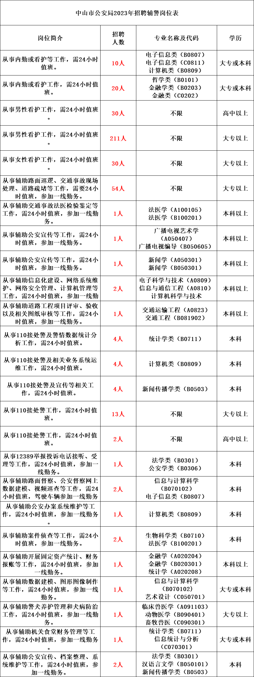 根据《中山市公安机关警务辅助人员招聘办法》有关规定,我单位决定面向社会公开招聘400名辅警。现将有关招聘事项通告如下:
