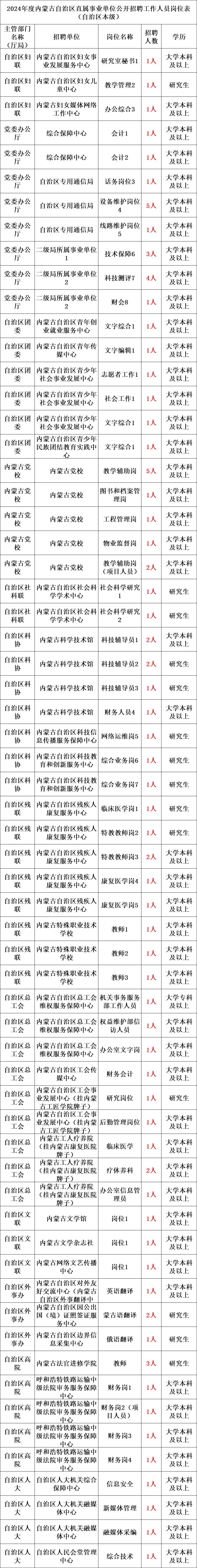内蒙古自治区2024年度事业单位