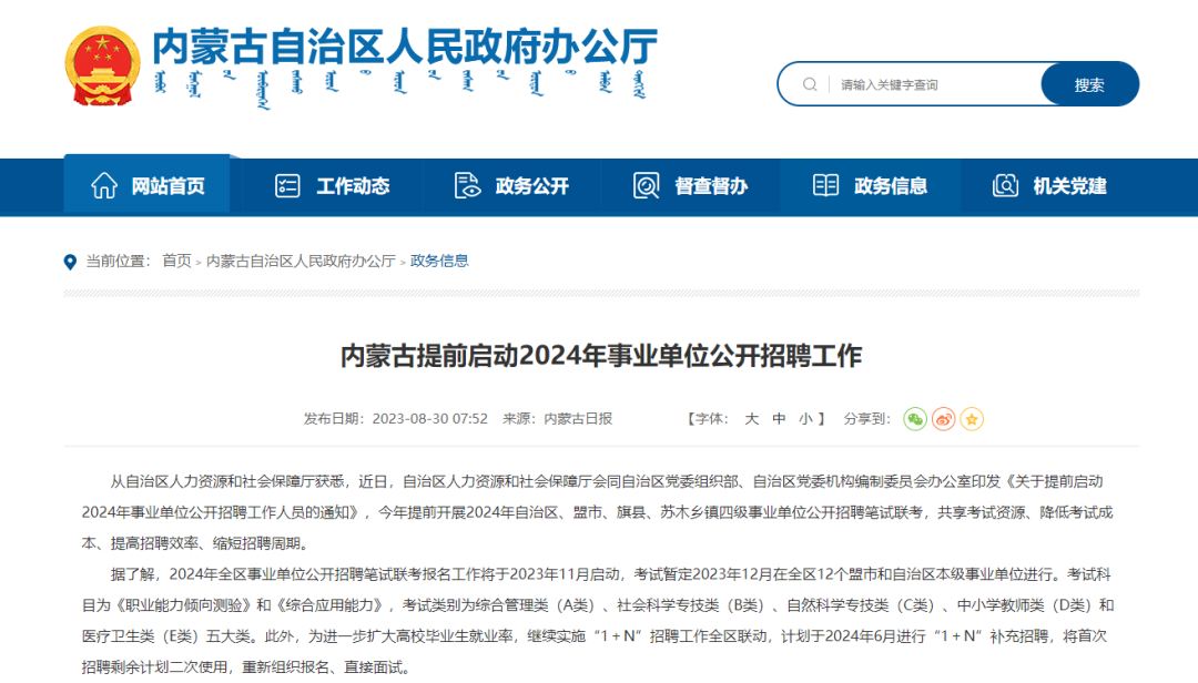 2024年内蒙古事业单位联考招聘11980人