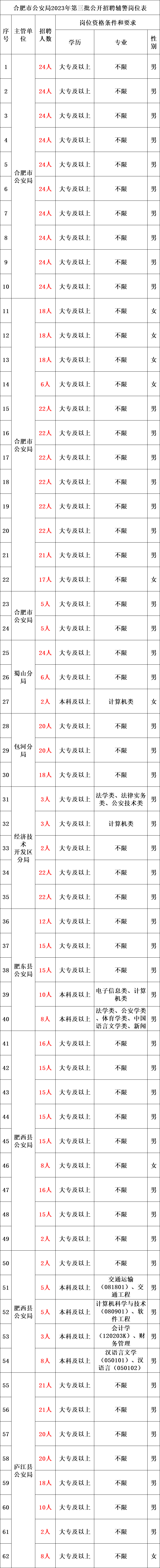1、合肥市公安局2023年第三批公开招聘警务辅助人员公告