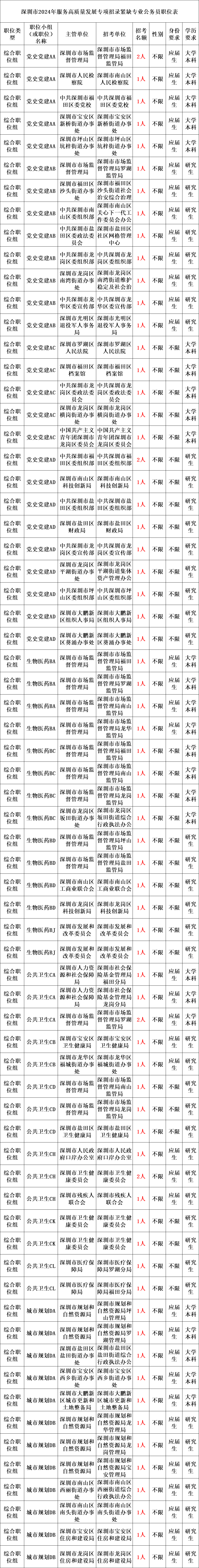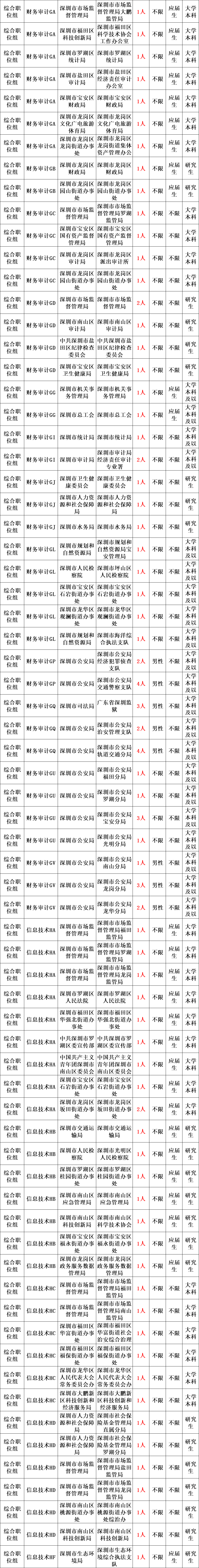 全市各级机关计划招录公务员601名,报考人员可通过深圳组工在线网站(http://www.zzb.sz.gov.cn)、深圳市人力资源和社会保障局网站(http://hrss.sz.gov.cn)、深圳市人力资源和社会保障局网站考试院专栏(http://hrss.sz.gov.cn/szksy,以下简称深圳市考试院专栏)查阅具体的招录机关、职位、人数和报考资格条件。