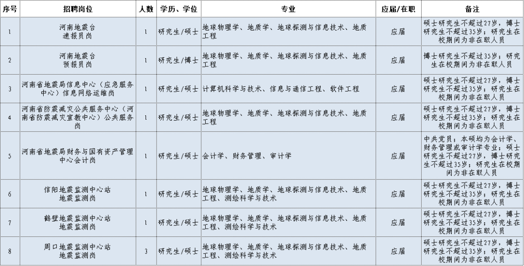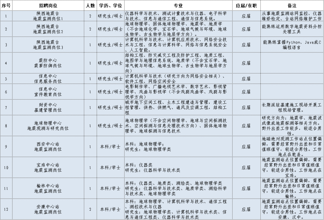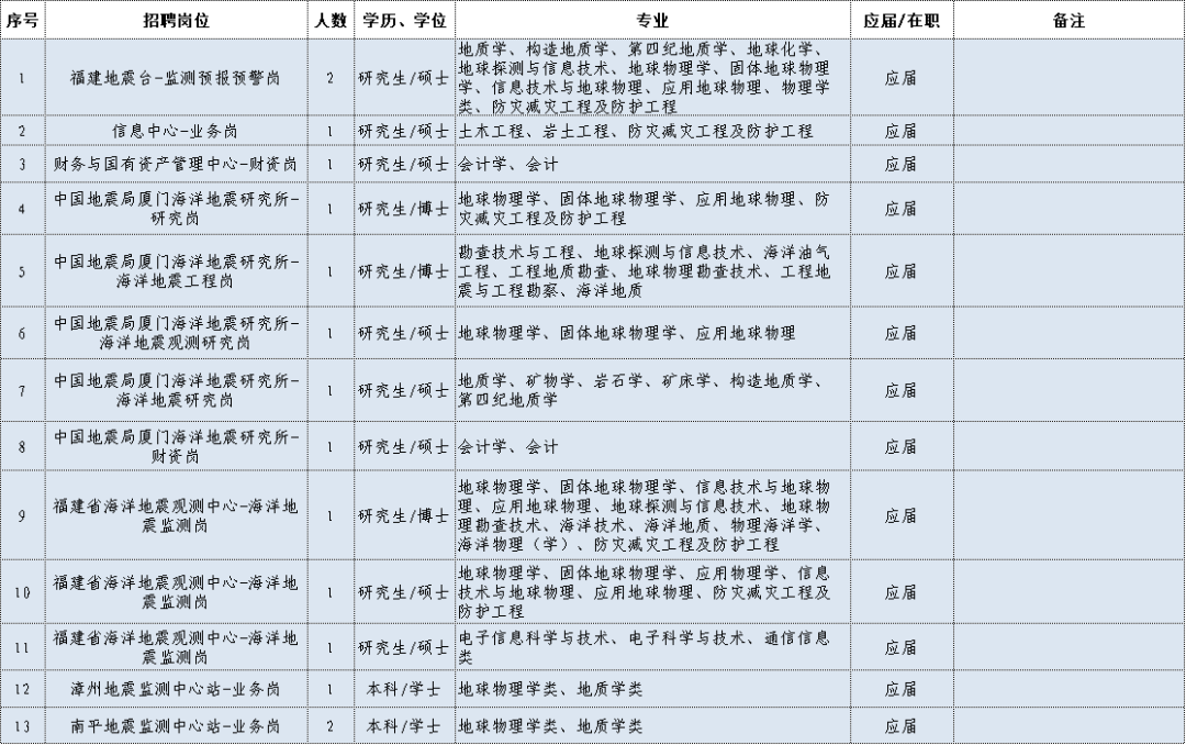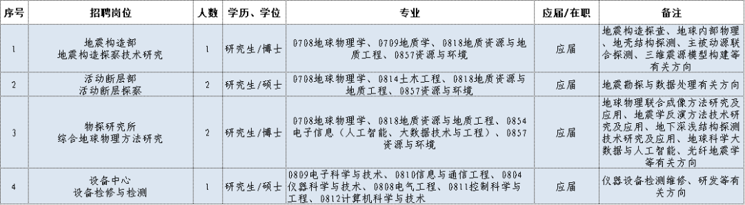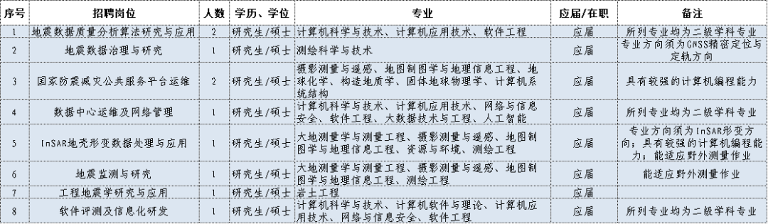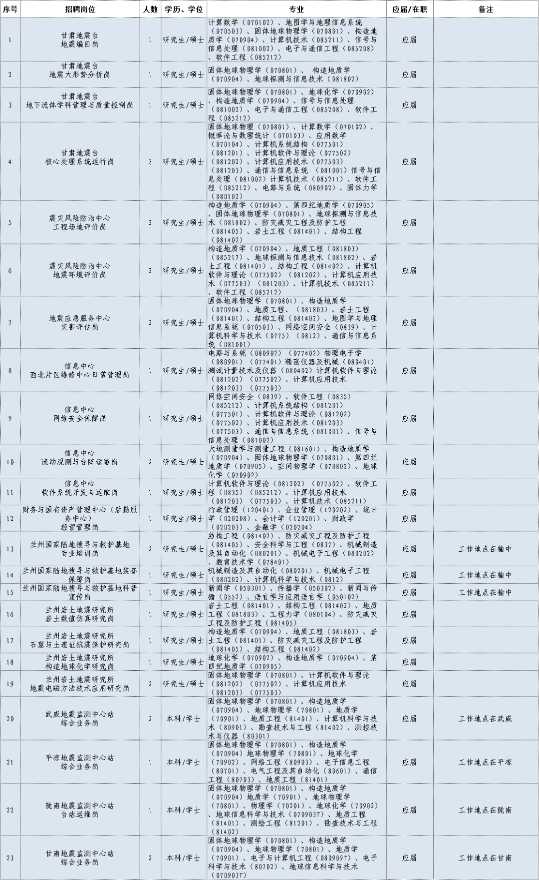 根据工作需要,中国地震局所属单位计划面向应届毕业生和社会在职人员公开招聘工作人员。招聘公告将陆续在各单位网站公开发布,可直接登录各单位网站了解详情。本批次公开招聘共涉及31家单位,共计划招聘工作人员302名。