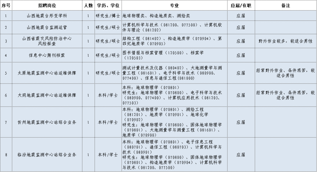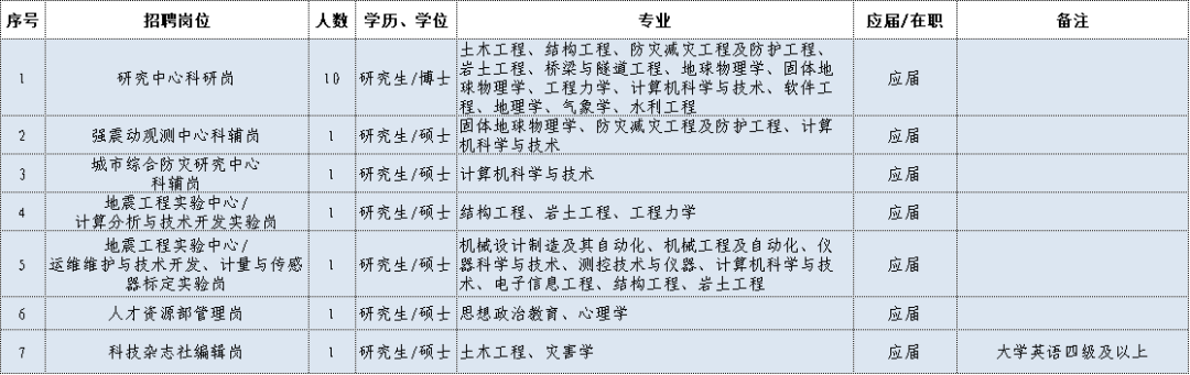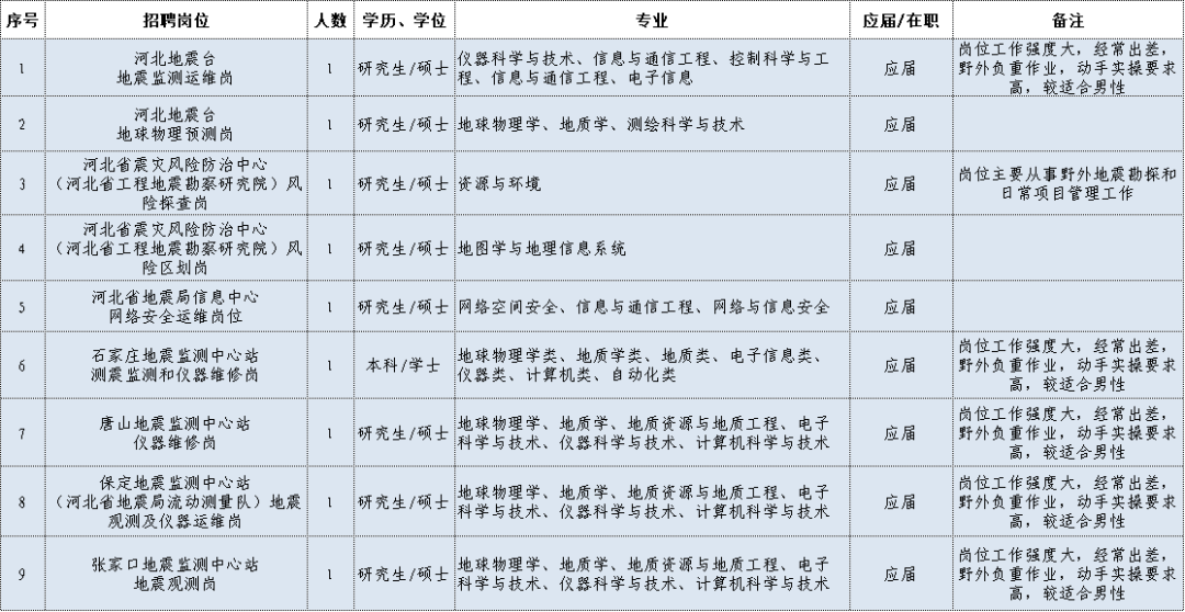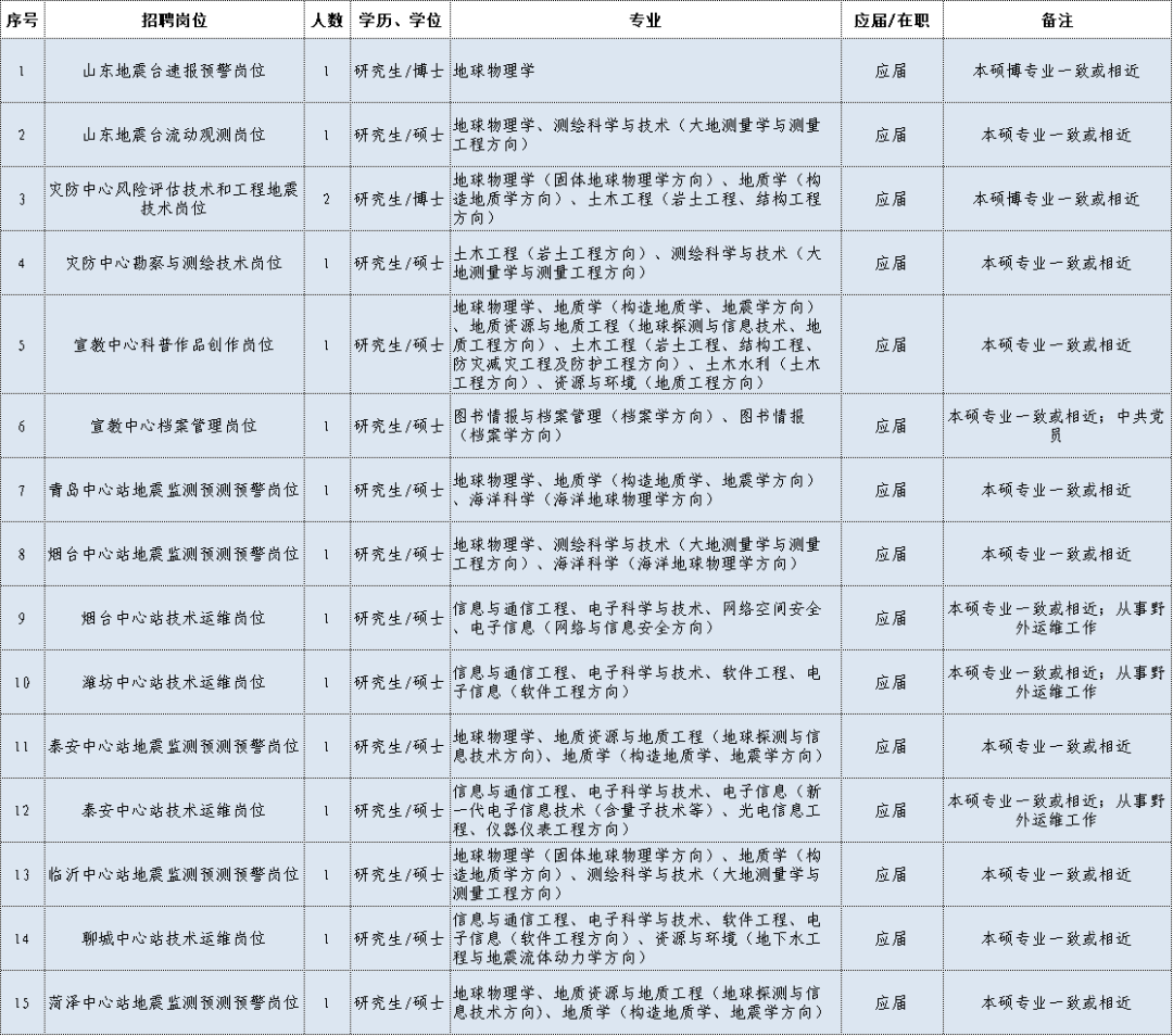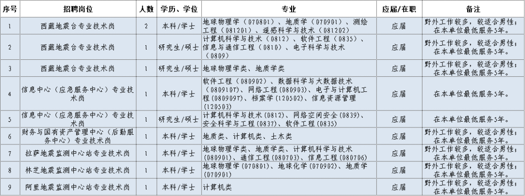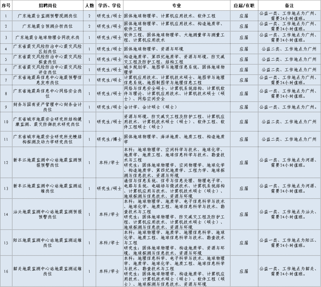 根据工作需要,中国地震局所属单位计划面向应届毕业生和社会在职人员公开招聘工作人员。招聘公告将陆续在各单位网站公开发布,可直接登录各单位网站了解详情。本批次公开招聘共涉及31家单位,共计划招聘工作人员302名。