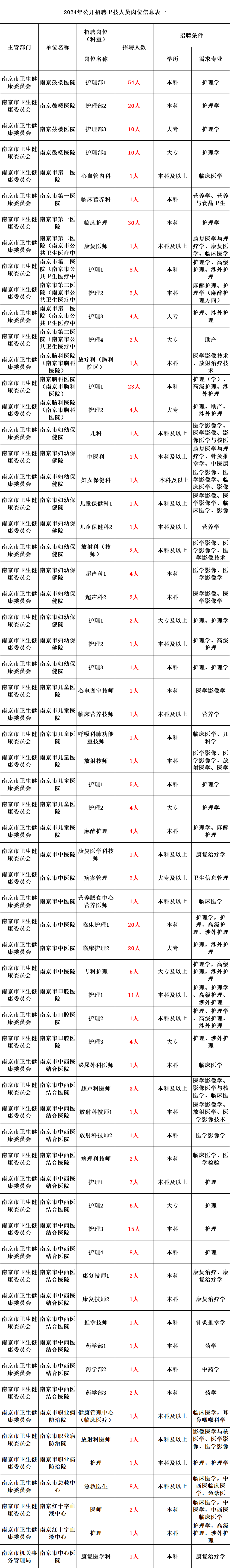 为更好地选拔优秀人才,优化卫技人员结构,南京市卫生健康委员会、南京市机关事务管理局所属事业单位面向社会公开招聘 1065名(编内181名,编外884名)卫技人员。根据《江苏省事业单位公开招聘人员办法》(苏办发﹝2020﹞9号)等规定,现将有关事项公告如下: