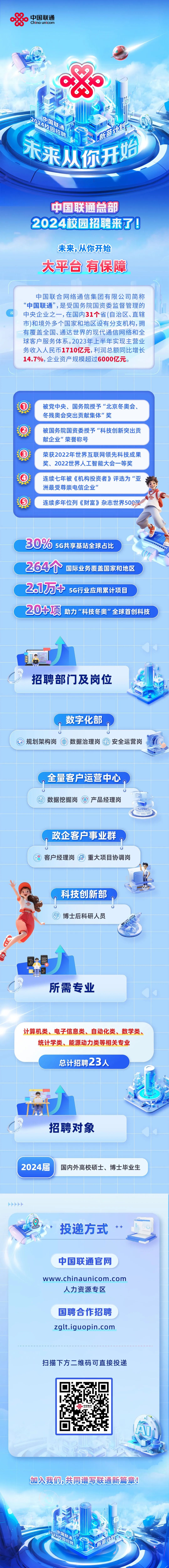 中国联通总部2024年招聘!