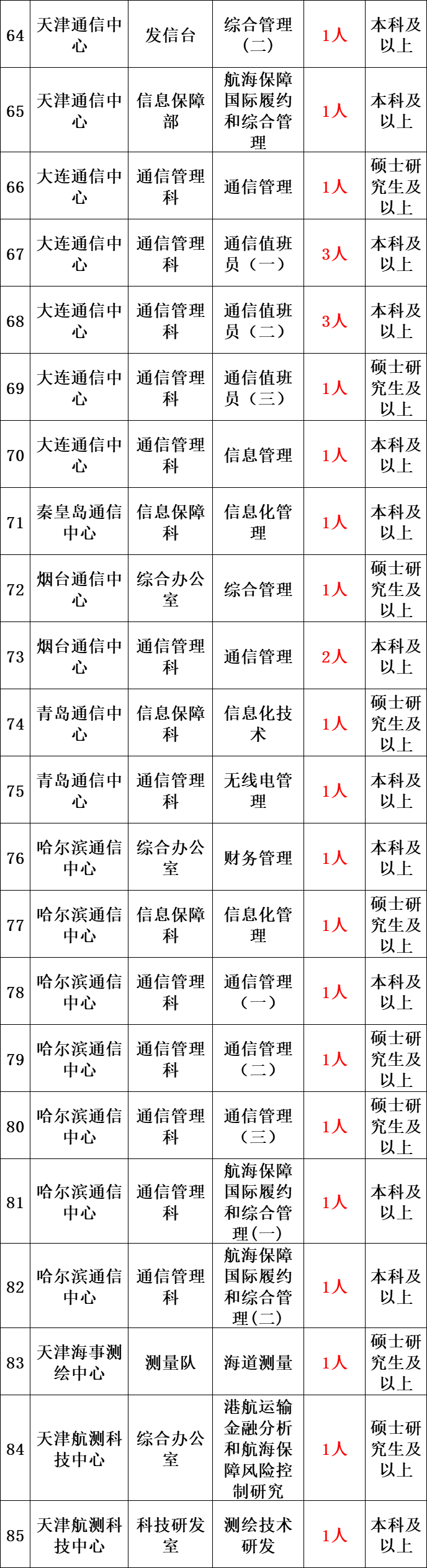 具体的招聘人数、职位、资格条件等详见《北海航海保障中心2024年度公开招聘工作人员职位一览表》(附件1)。