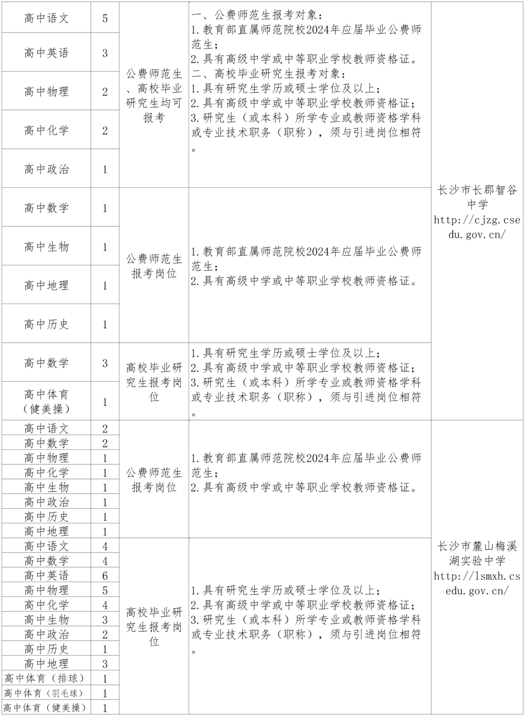 公开招聘公费师范生和高校毕业研究生岗位表