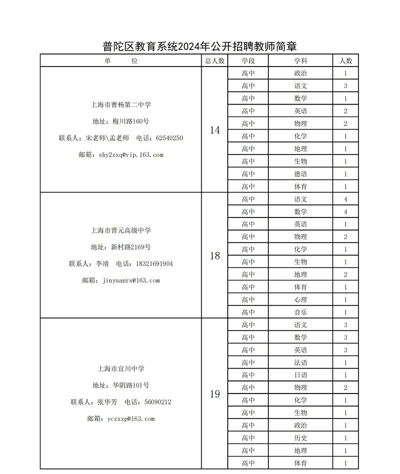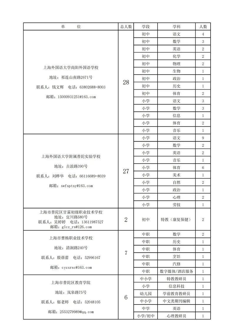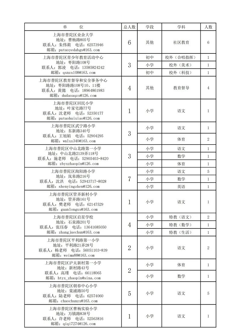 普陀区教育系统2024年76个事业单位公开招聘525名教师,包括语数外、物理、化学、政治、体育等学科。欢迎有志于从事教育事业的人员积极向学校报名。