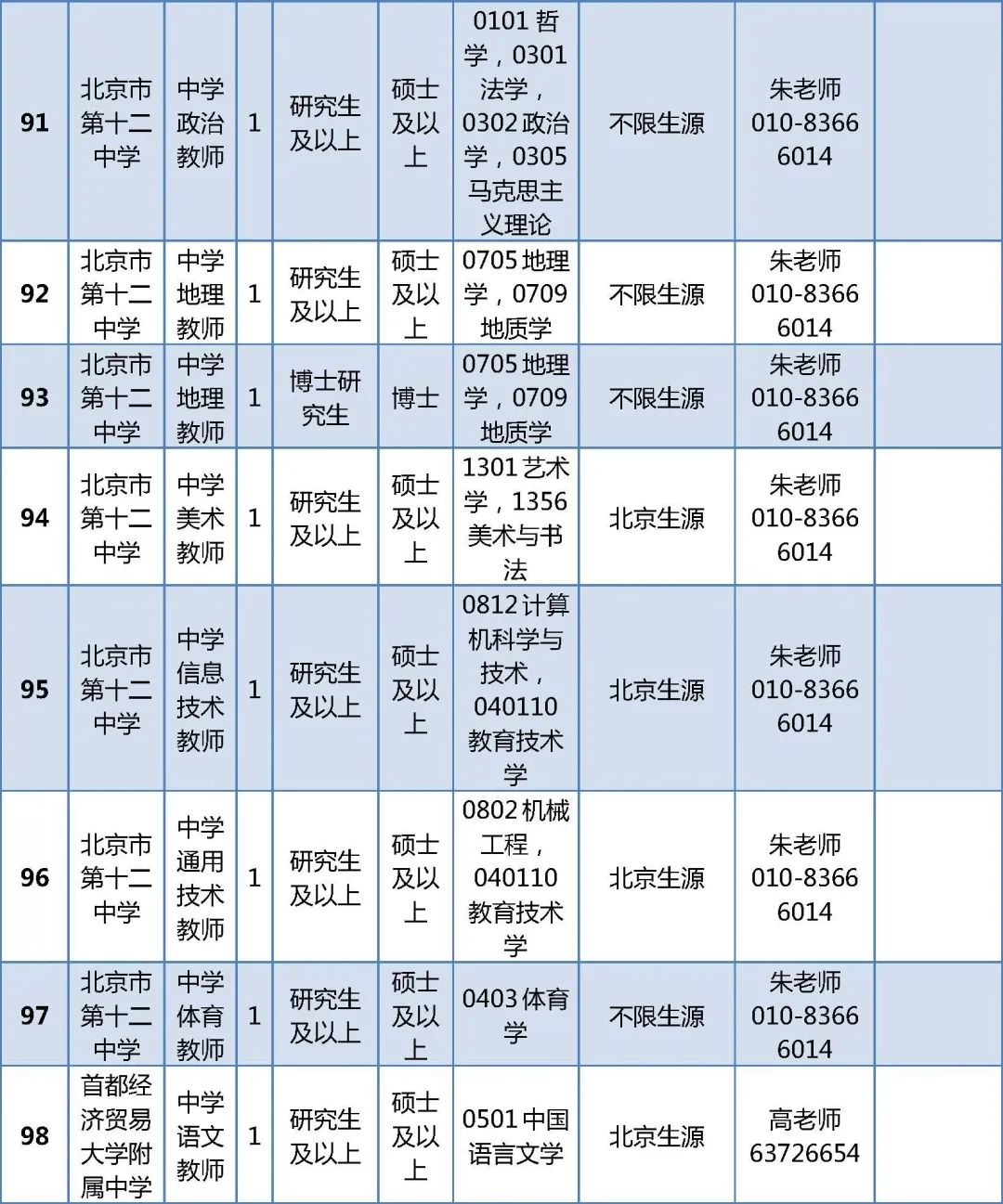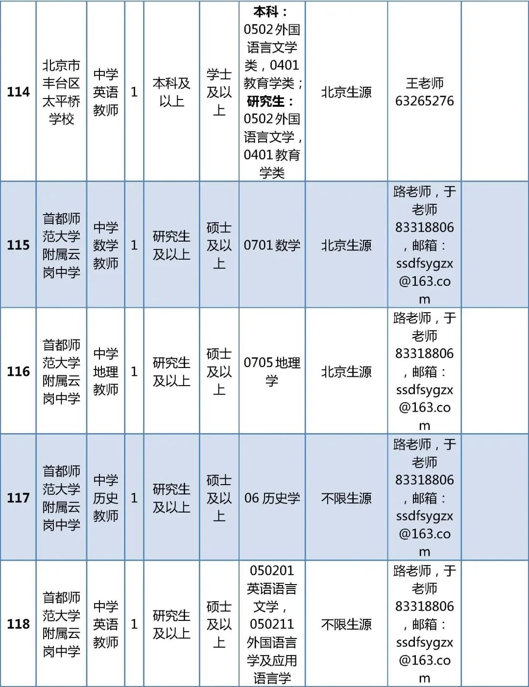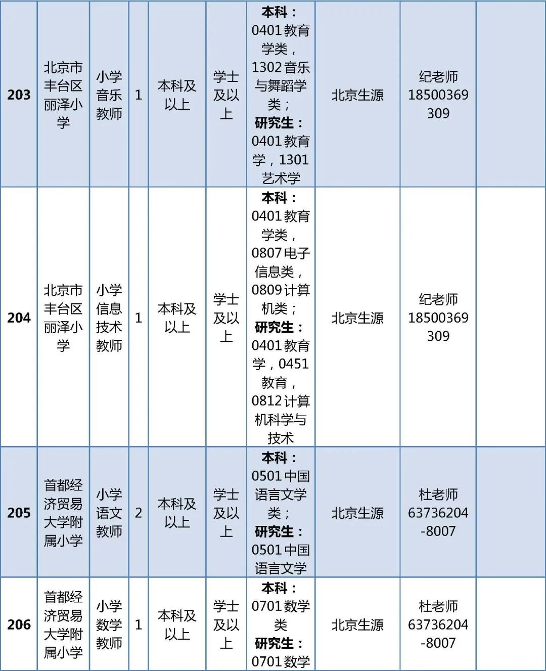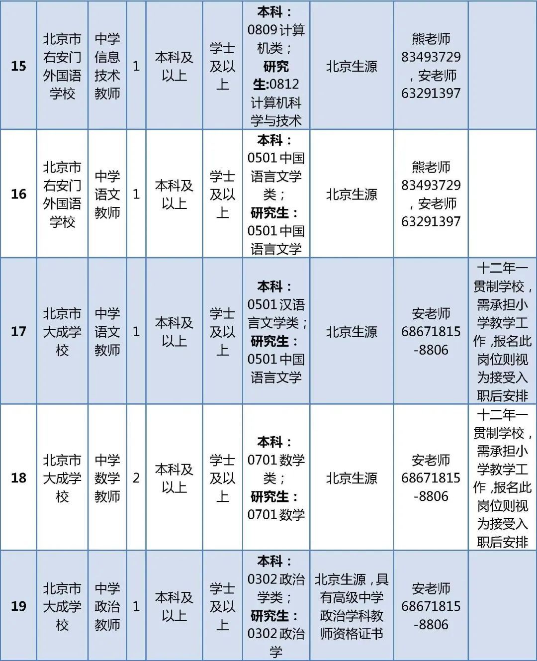 (六)应届毕业生在18周岁以上。其中北京生源具有北京市常住户口、年龄为35周岁以下(1989年1月1日(含)以后出生);非京生源具有硕士研究生及以上学历、研究生期间所修必修课程成绩全部合格且无补考记录、英语四级达到425分及以上 (音、体、美艺术类专业除外)、硕士研究生为30周岁以下(1994年1月1日(含)以后出生),博士研究生为35周岁以下(1989年1月1日(含)以后出生),在校学习期间未缴纳社会保险,符合其他非京生源进京条件;