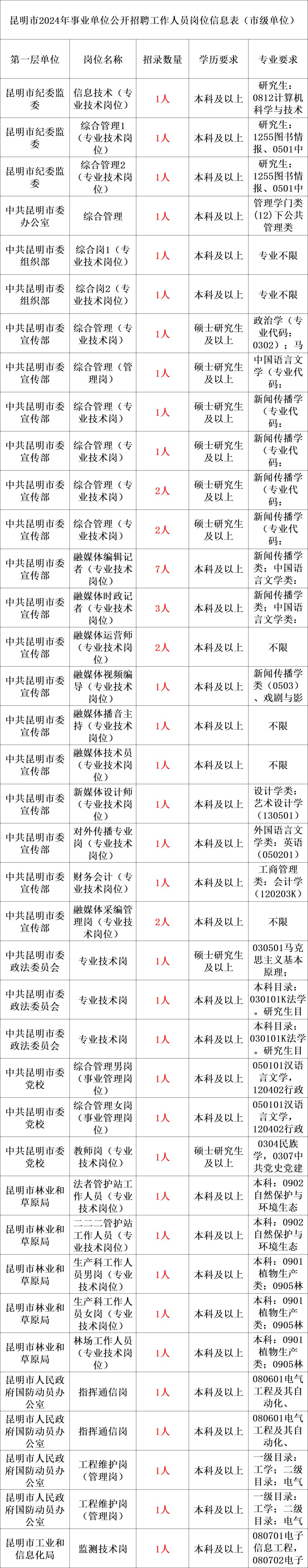 根据《云南省事业单位公开招聘工作人员办法》《昆明市事业单位公开招聘人员办法(试行)》等有关规定,现将昆明市2024年事业单位公开招聘工作人员有关事项公告如下: