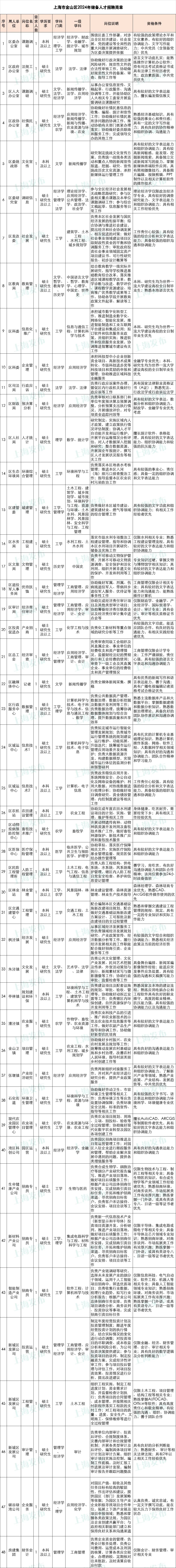 【招聘】金山区启动2024年储备人才招聘,4月15前可报名