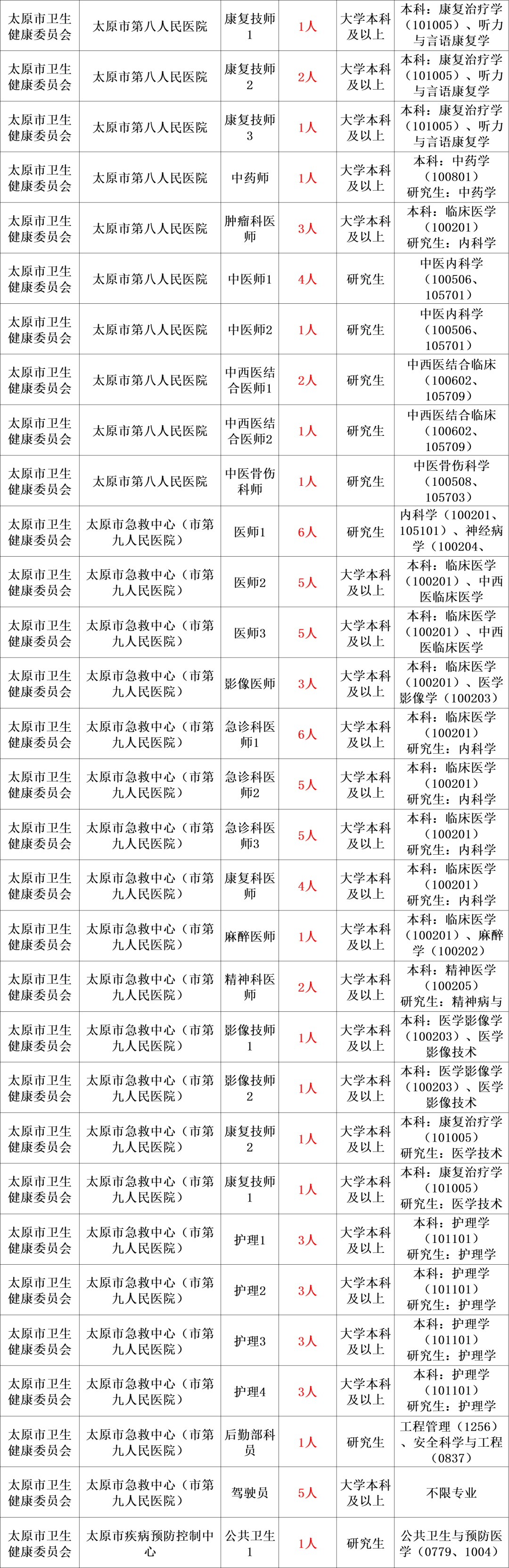 太原市市直事业单位2024年公开招聘工作人员434名,其中博士研究生3名、硕士研究生224名、大学本科207名,按规定设置应届毕业生专门岗位135名、服务基层项目人员专门岗位46名。招聘岗位所需的具体条件以《太原市市直事业单位2024年公开招聘工作人员岗位表》(附件1,以下简称《岗位表》)的要求为准。