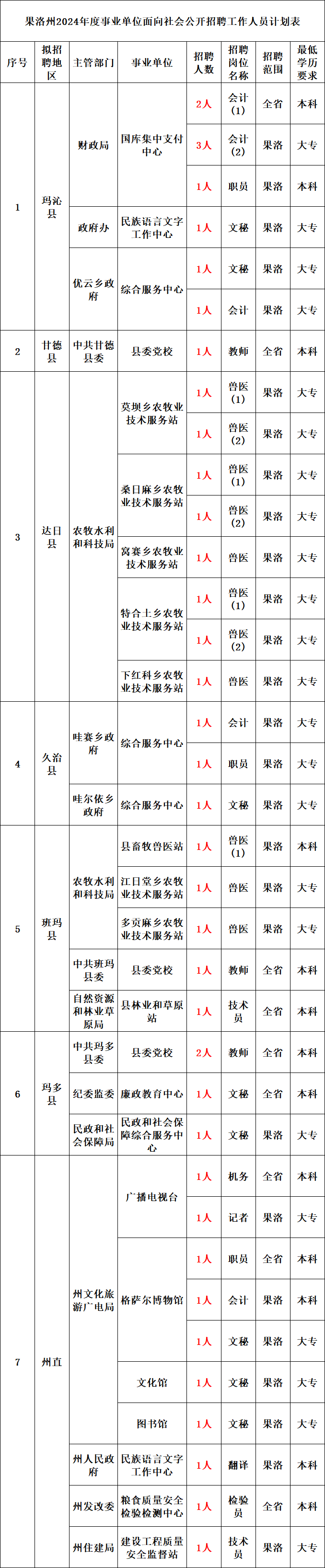 根据《2024年全省事业单位人员招聘工作方案》(青政办函〔2024〕21号)和《青海省事业单位公开招聘工作人员办法》(青人社厅发〔2015〕80号)等规定,现将2024年省直事业单位面向社会公开招聘工作人员有关事项公告如下。