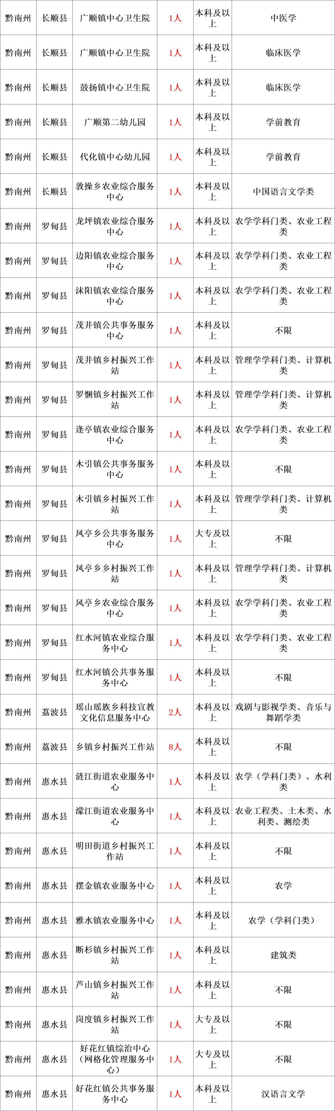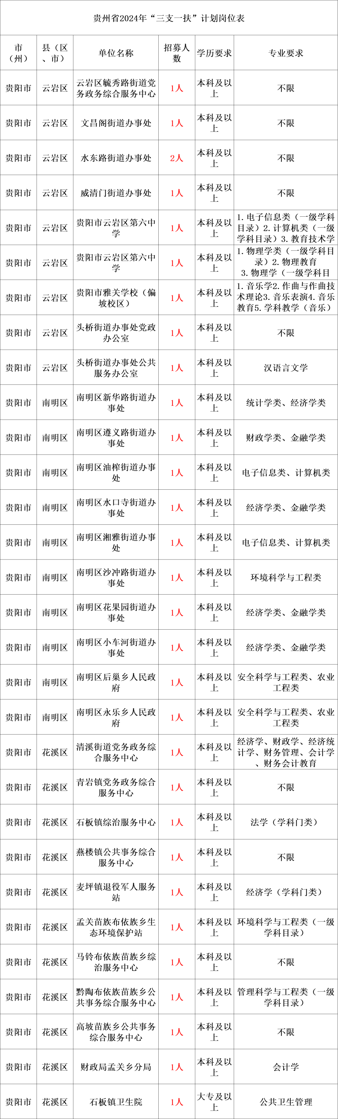 为深入落实党中央、国务院和省委、省政府推进乡村人才振兴及做好高校毕业生就业工作的决策部署,根据《中共中央组织部 人力资源社会保障部等十部门关于实施第四轮高校毕业生“三支一扶”计划的通知》(人社部发〔2021〕32号)、《中共贵州省委办公厅 贵州省人民政府办公厅印发<关于进一步引导和鼓励高校毕业生到基层工作的实施意见>的通知》(黔党办发〔2017〕41号)精神,结合我省实际,现就2024年贵州省“三支一扶”计划招募工作公告如下。