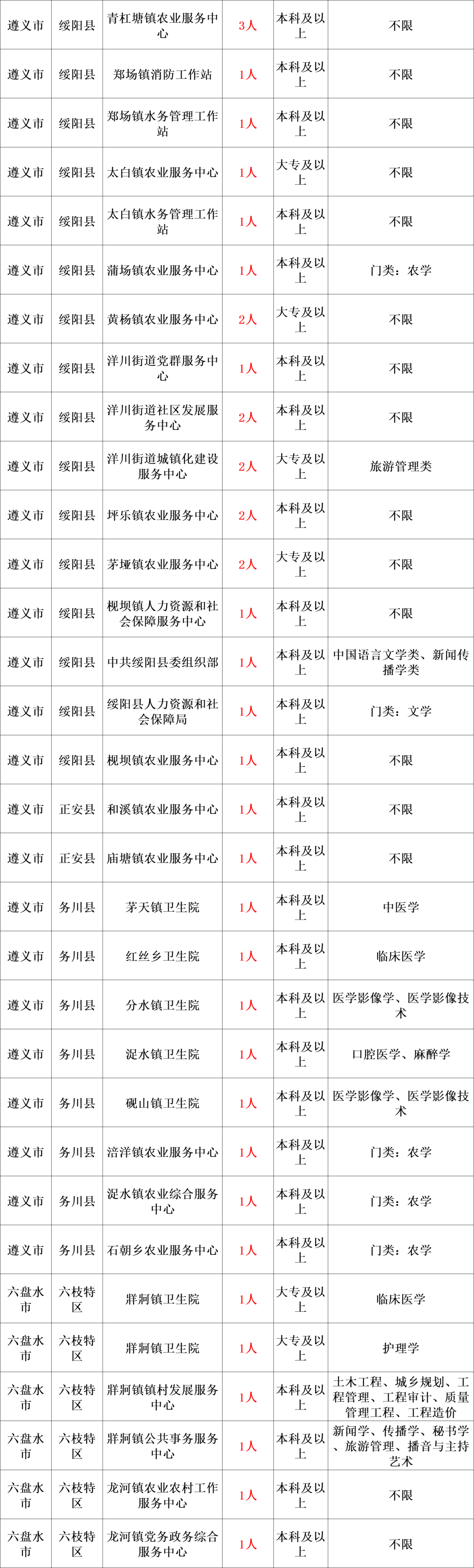 2.身体健康,有志于从事基层工作,有较强的吃苦和奉献精神,能胜任基层工作。