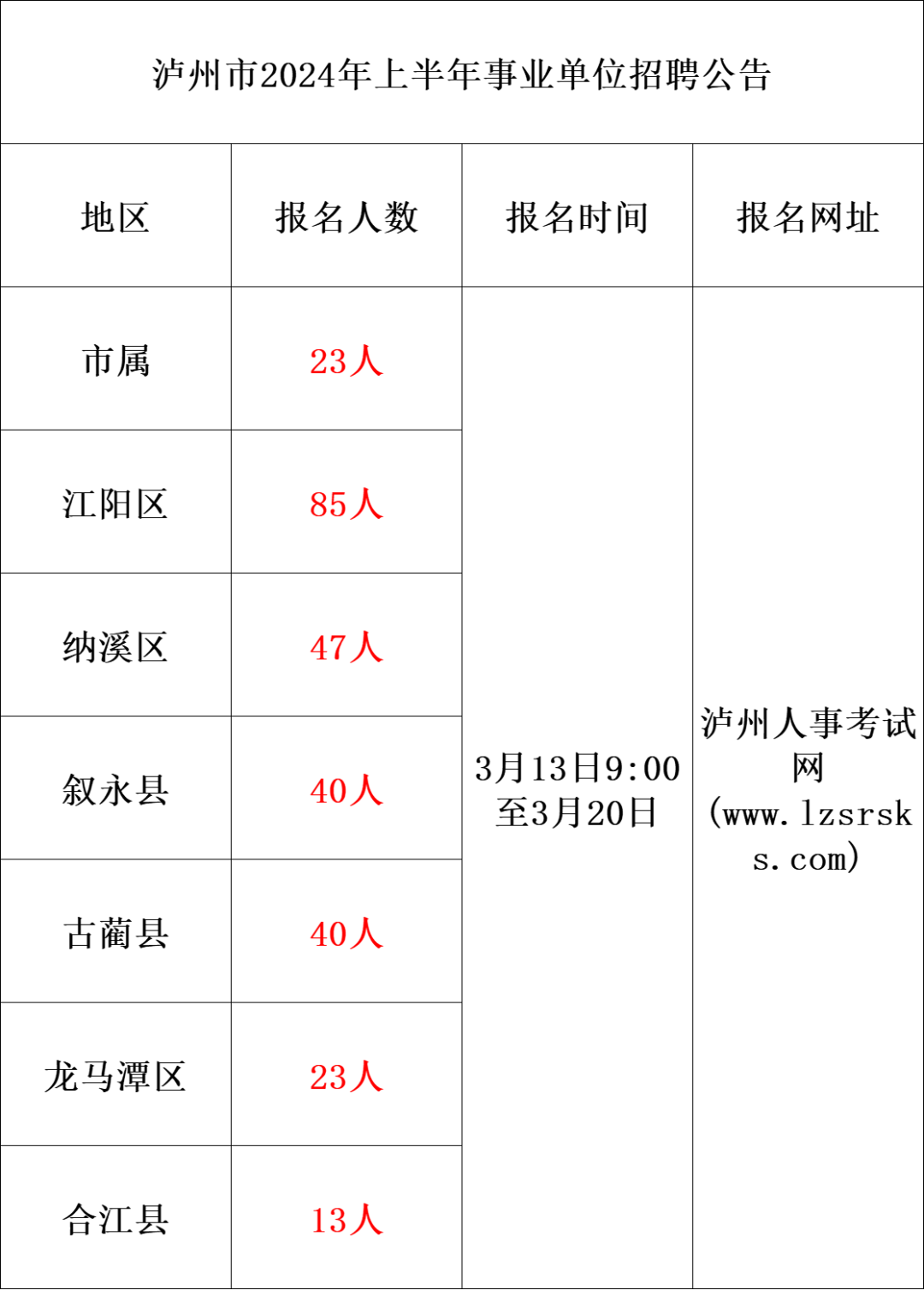 报名网站为泸州人事考试网(www.lzsrsks.com)。