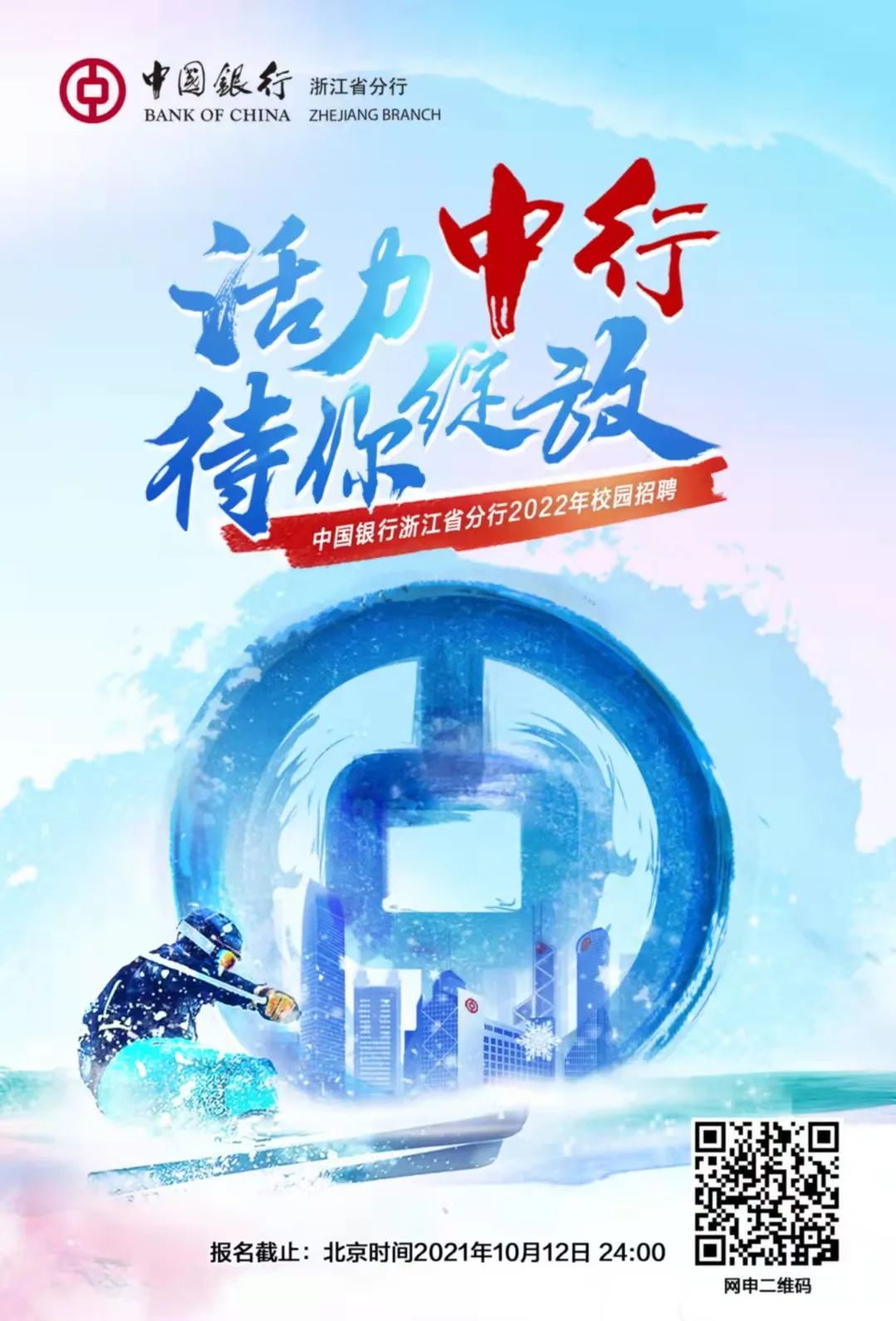 3、了解更多招聘信息及动态,敬请关注“中国银行人才招聘”“中国银行浙江分行”微信公众号。