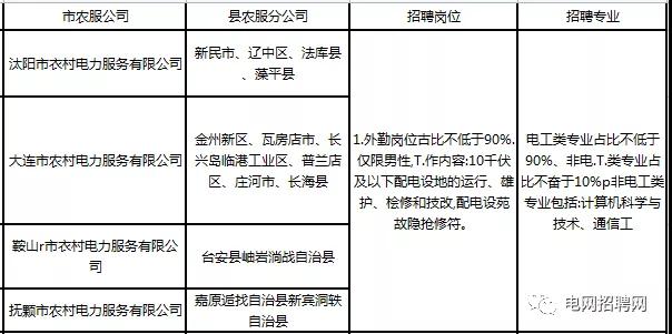 辽宁省各市农村电力服务有限公司联合招聘公告