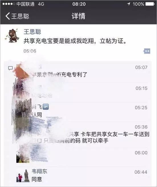 同为共享经济,充电宝总免不了被拿来与单车作比较。 共享单车,有理想,它要解决的是从车站到家门口的“最后一公里”难题,倡导的是绿色和环保;还有市场,光是2016年一年,全行业就获得了超过30亿元的融资金额,赤橙黄绿青蓝紫的单车可以从大城市的街头排到巷尾。 充电宝则不一样,它的面世,许多人都不看好。不少见过世面,能够准确嗅出未来动向的投资人都看不明白,移动充电宝人手一个了,还有必要租吗? 转折点发生在2017年上半年,4天内,多家共享充电宝企业共拿到了7.5亿元的融资,超出众人意料。 那个著名的赌约,也诞生在当年某个普普通通的凌晨。传说,听闻聚美优品将以3亿元入股街电后,王思聪当即在朋友圈吐槽:“共享充电宝要是能成,我吃翔。立帖为证。”