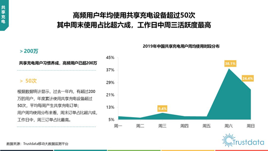 简单估算一下,贾婷这一年在各个共享充电平台之间雨露均沾式的使用,已经让她为此付出了过千元。这笔钱要用来网购充电宝,备的货都够在天桥底摆几天摊了。 为了偶尔的远途旅程不无聊,为了看完深夜场电影后还有电打车回家,为了能够帮女朋友唤醒她冻得罢工的手机,总是恰好出现的共享充电宝,已然成为生活刚需。 据Trustdata的《2019年中国共享充电行业发展分析简报》,超过200万用户年均使用充电设备超过50次,也就是说平均每周都要额外花钱充电一次。