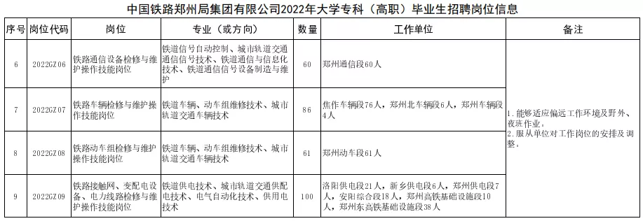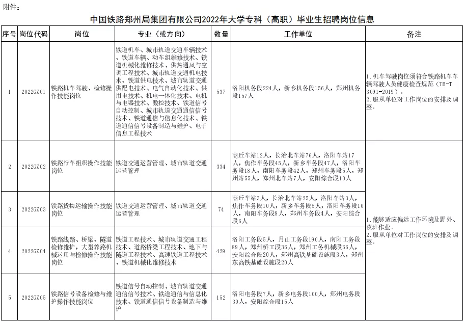 根据企业发展对人才的实际需求,中国铁路郑州局集团有限公司拟招聘全日制普通高等院校大专(高职)学历毕业生,现将有关事项公告如下: