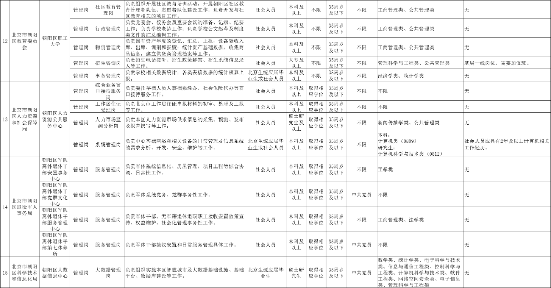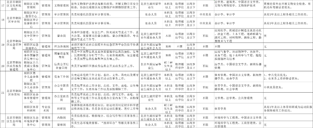 (四)招聘岗位类别为管理岗位、专业技术岗位,具体要求详见各招聘部门规定的岗位条件(详见下表);