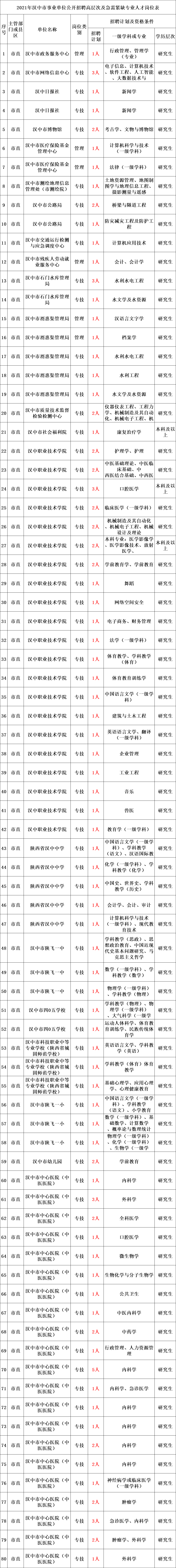 在汉中市政府门户网站(http://www.hanzhong.gov.cn)、汉中市人力资源和社会保障局网(http://rsj.hanzhong.gov.cn)发布招聘公告,公布具体招聘岗位和资格条件,详见《2021年汉中市事业单位公开招聘高层次及急需紧缺专业人才岗位表点击获取》(附件1)。