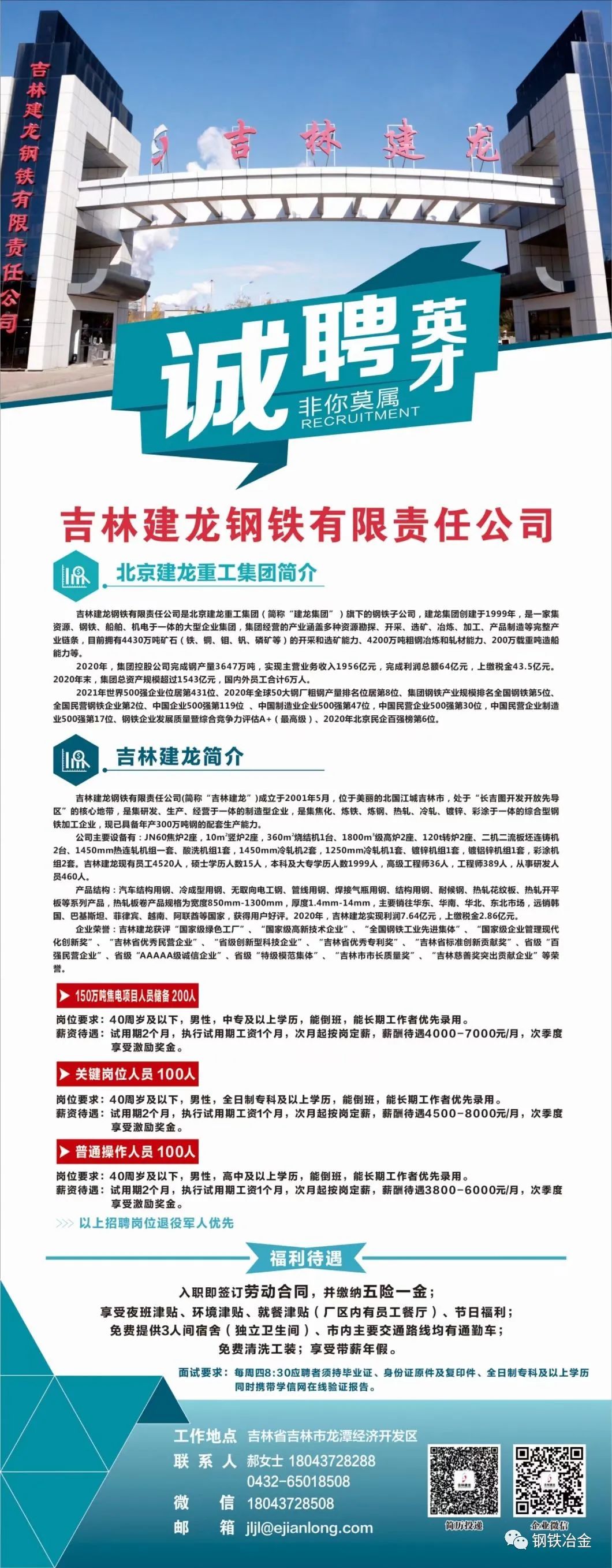 400人!吉林建龙招聘了!!!