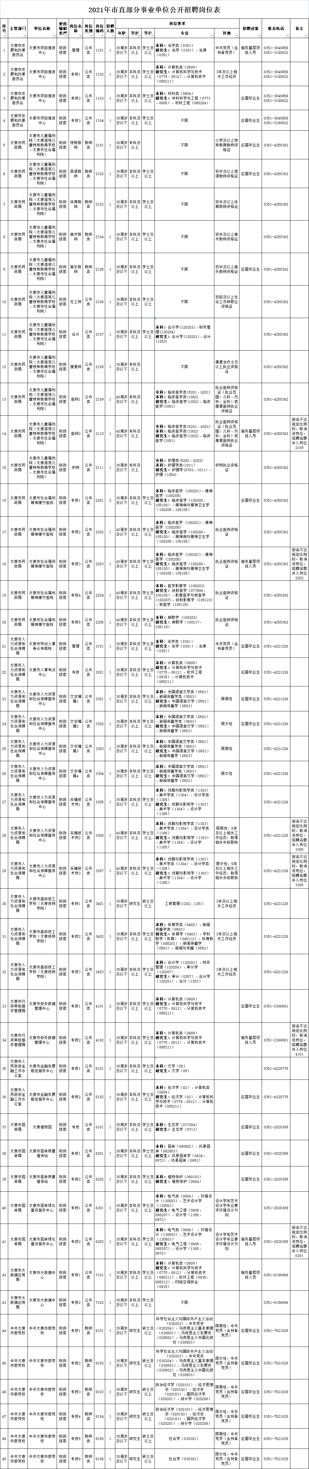 2021年太原市市直部分事业单位公开招聘工作人员公告