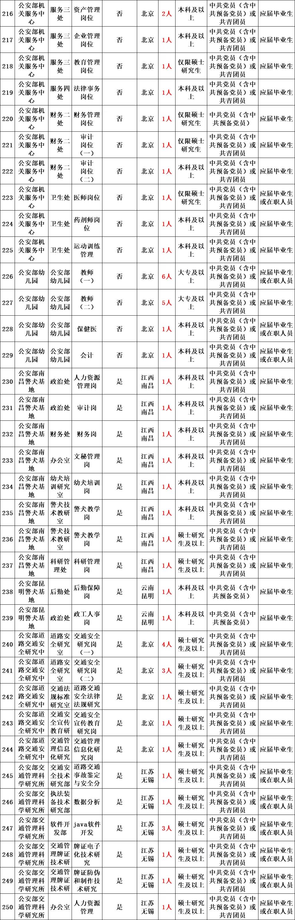 本次共招录250个职位、546人(职位信息详见附件1)。