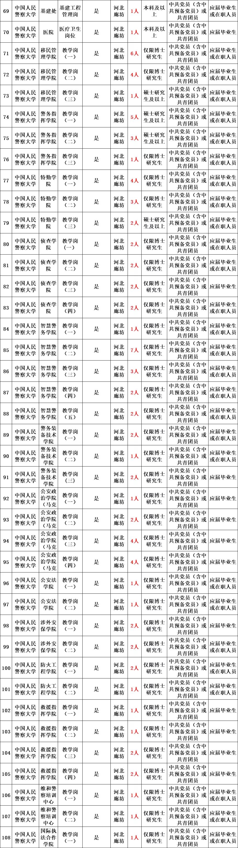 3.应届本科生应在24周岁以下(1998年1月1日后出生);应届硕士研究生应在27周岁以下(1995年1月1日后出生);报考京内单位的应届博士研究生应在35周岁以下(1987年1月1日后出生),报考京外单位的应届博士研究生可放宽到40周岁(1982年1月1日后出生)。在职人员年龄应在35周岁以下(1987年1月1日后出生);身心健康,能够胜任繁重艰巨的公安工作;