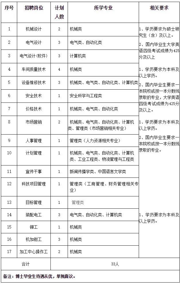 根据发展需要,常德烟机公司拟公开招聘专业技术和生产操作类岗位共7人。