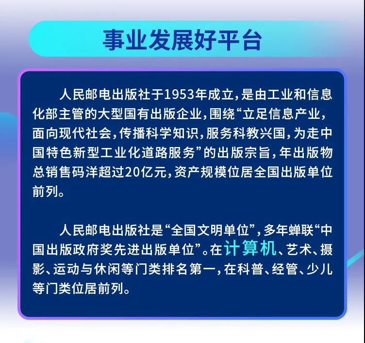 落户北京!九险三金&公寓食堂! 人民邮电出版社2022届校园招聘!