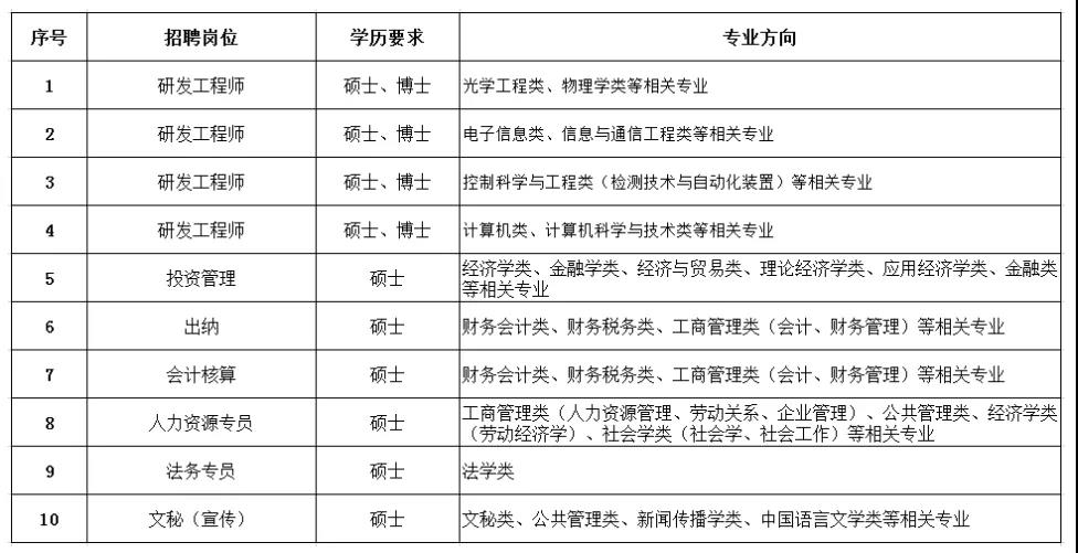 一 、招聘岗位及要求