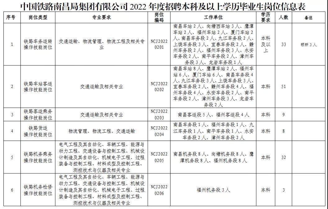附件:中国铁路南昌局集团有限公司2022年度招聘本科及以上学历毕业生岗位信息表.pdf(71.87K)