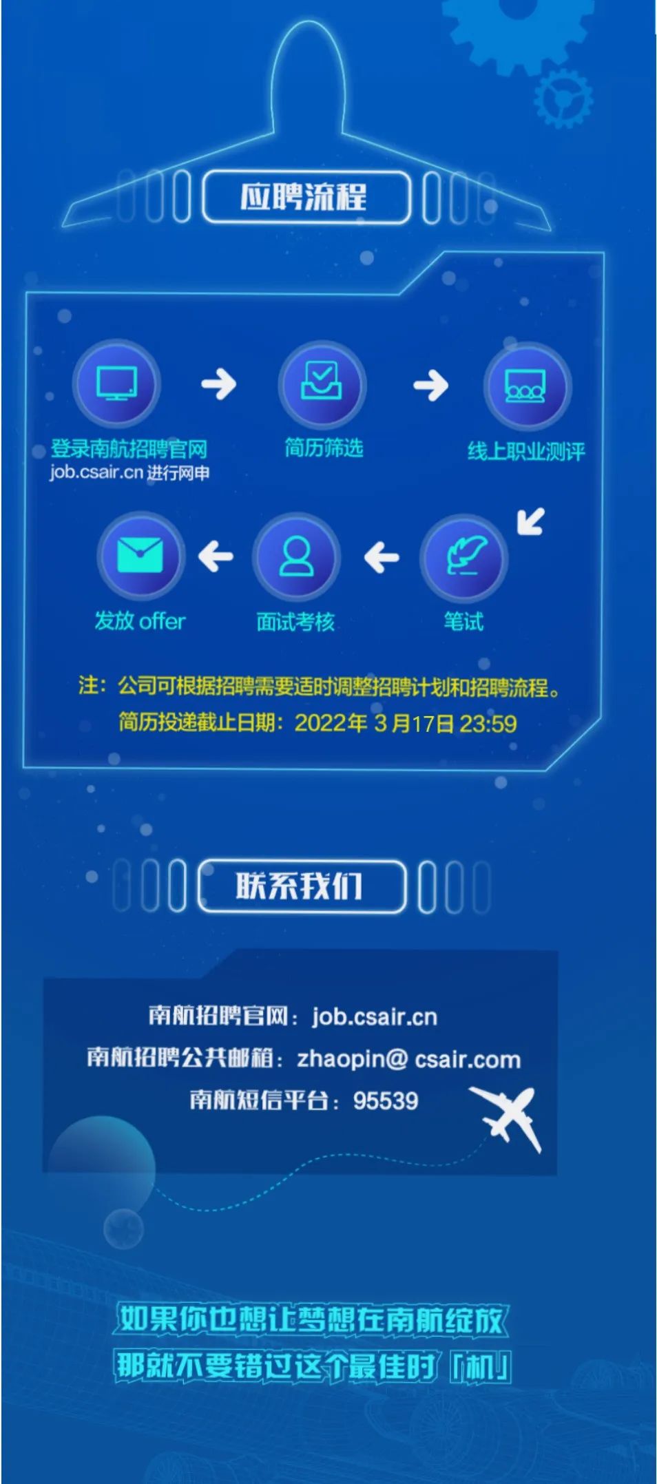 中国南方航空2022年春季招聘,应往届&大专可报!七险两金+带薪假期!