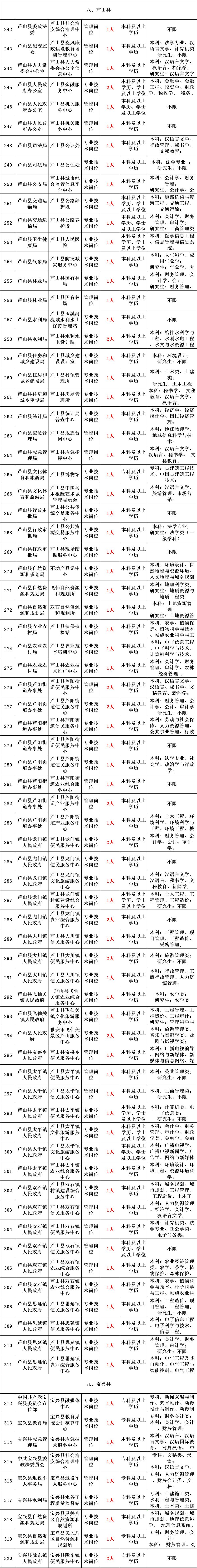 本次公开招聘综合类事业单位工作人员名额共计392名,具体招聘单位、岗位、名额及报考资格条件详见《雅安市2022年公开考试招聘综合类事业单位工作人员岗位和条件一览表》。