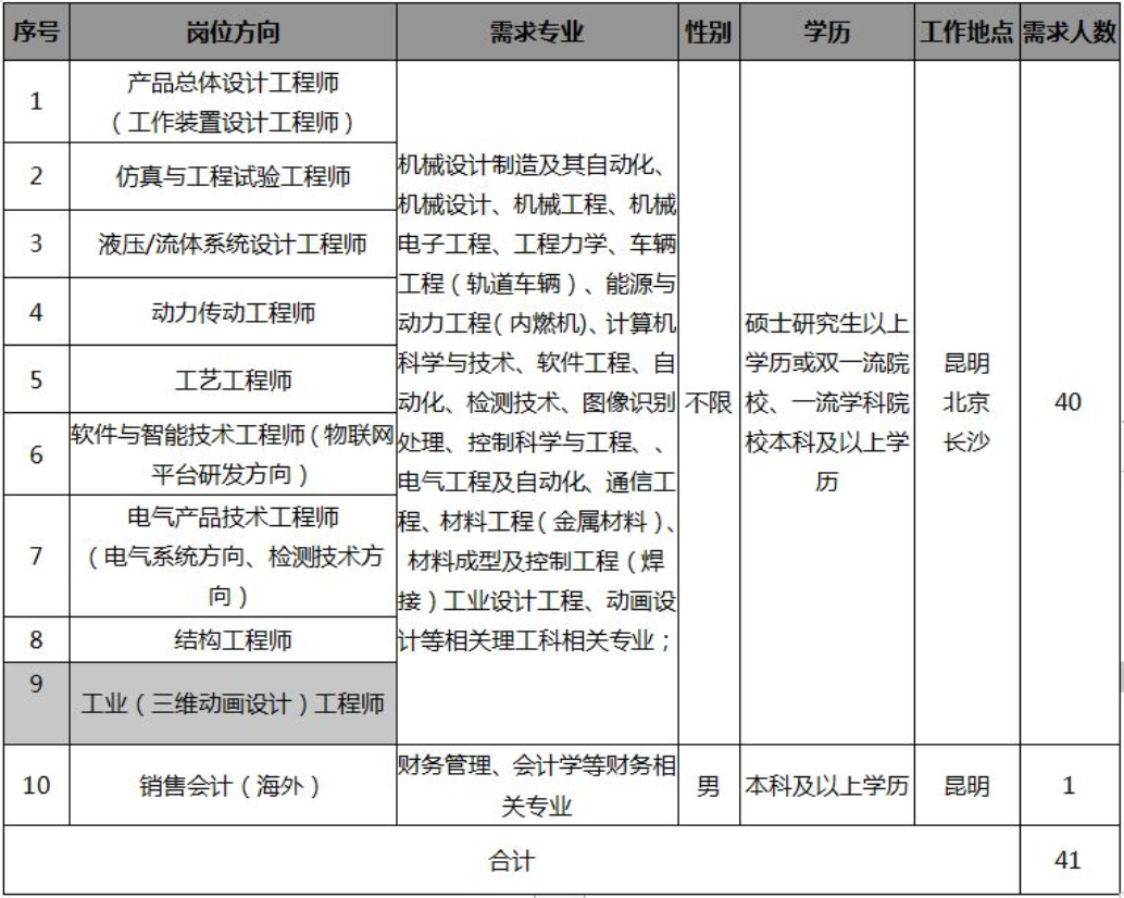 注:岗位方向指见习期满后,根据专业方向及结合公司发展需要分配的方向。以上岗位工作地点为长沙的,见习期(第一年)需在昆明。