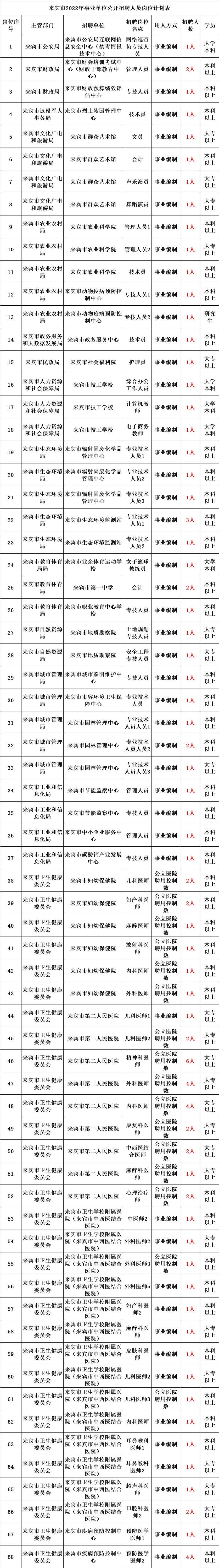 来宾市2022年公开招聘事业单位人员公告