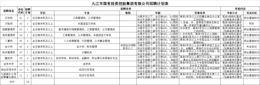 为进一步加强集团人才队伍建设,加快推进集团各项工作,决定面向社会公开招聘24名工作人员。现将有关事项公告如下:
