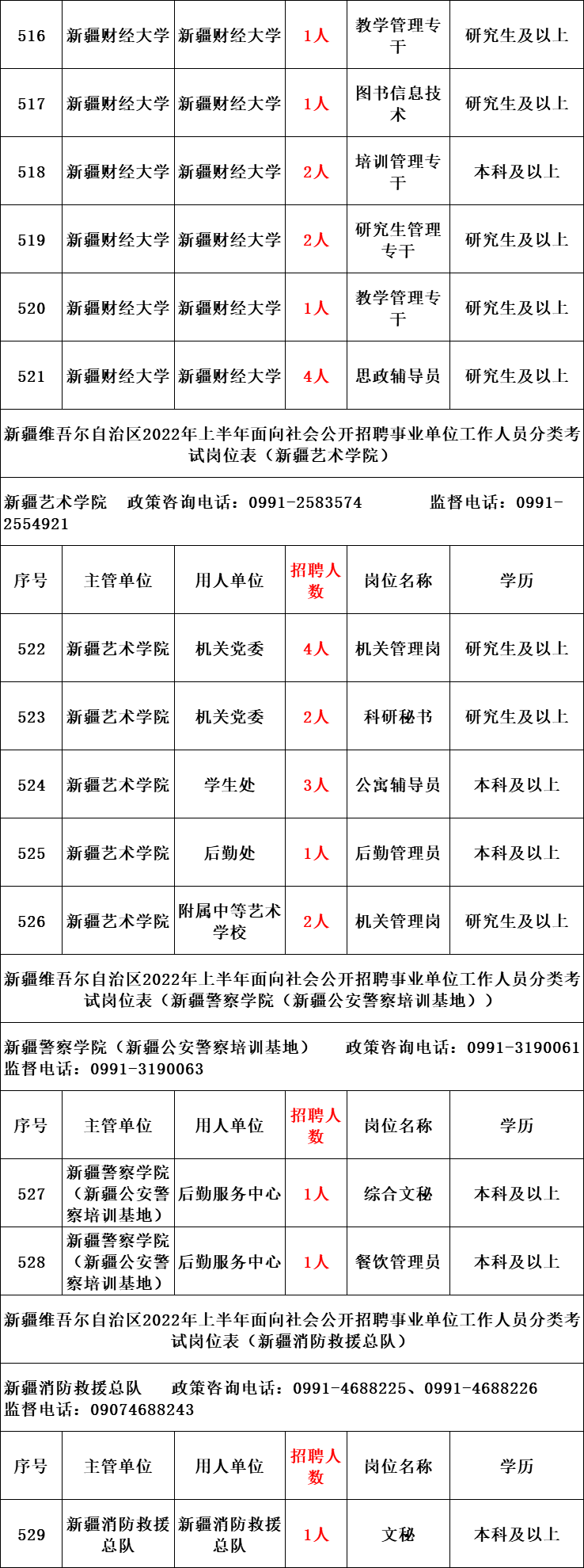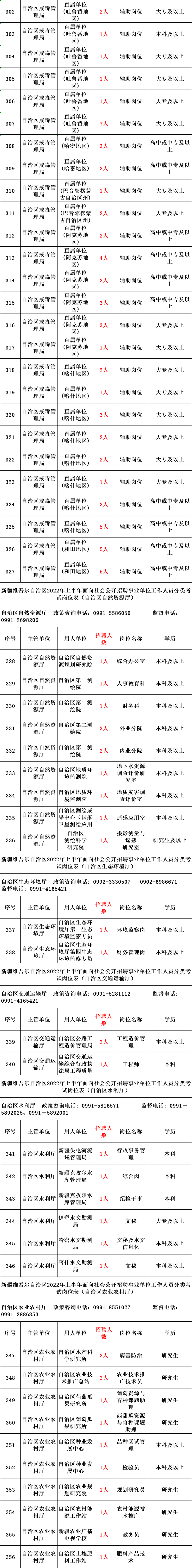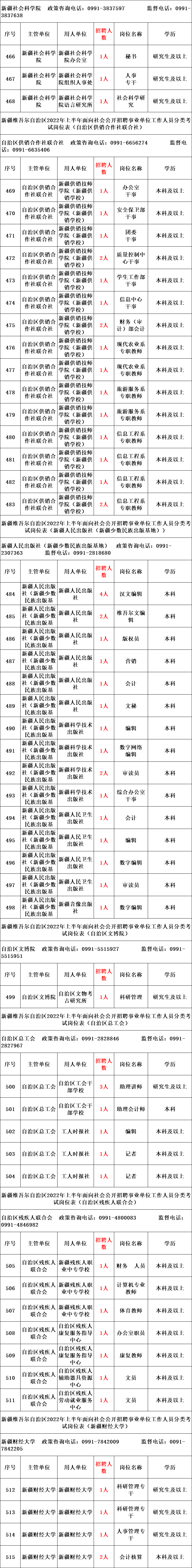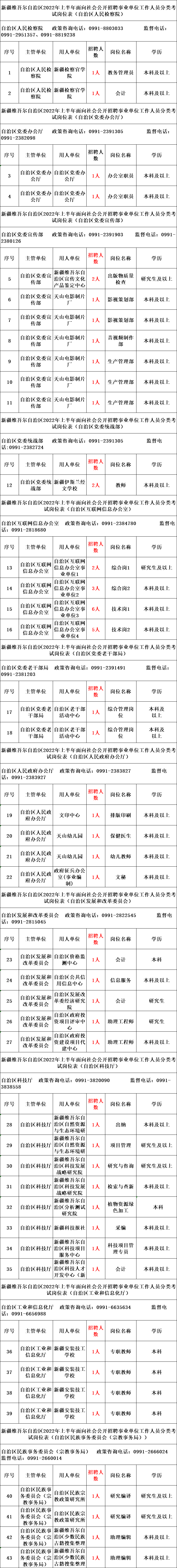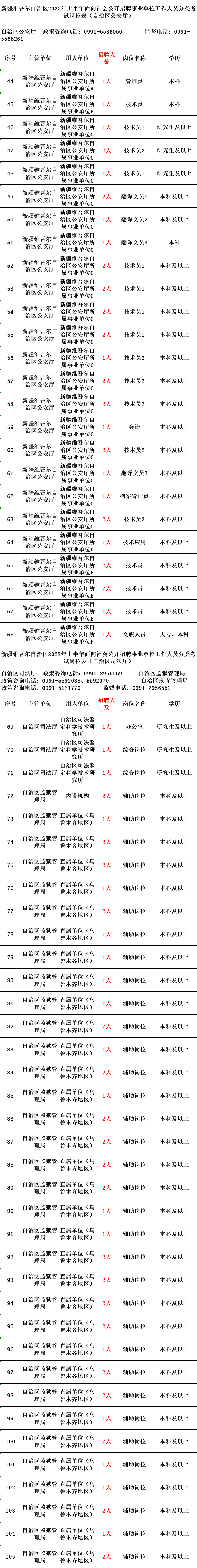 本次公开招聘共计2775个岗位3793人,具体岗位详见《新疆维吾尔自治区2022年上半年面向社会公开招聘事业单位工作人员分类考试岗位表》(以下简称《岗位表》)。