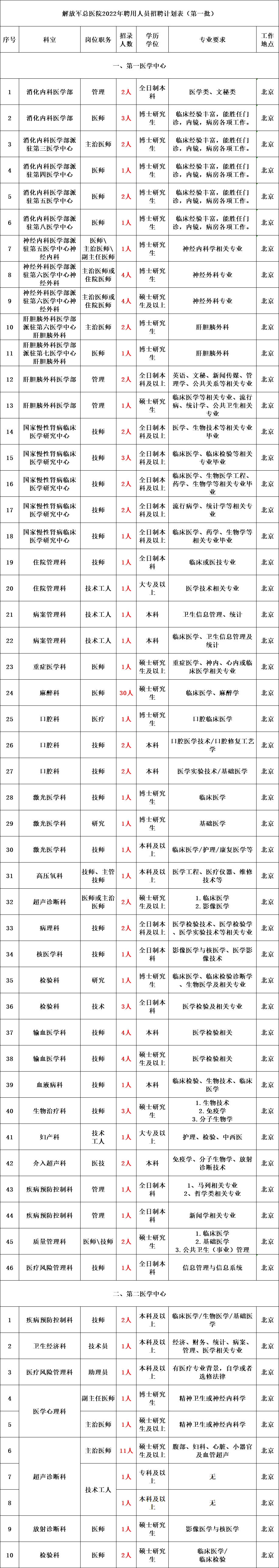 2022年第一批招聘计划395个岗位、1249人。涵盖医疗、科研、药学、医技等类别,详见解放军总医院2022年聘用人员招聘计划表。